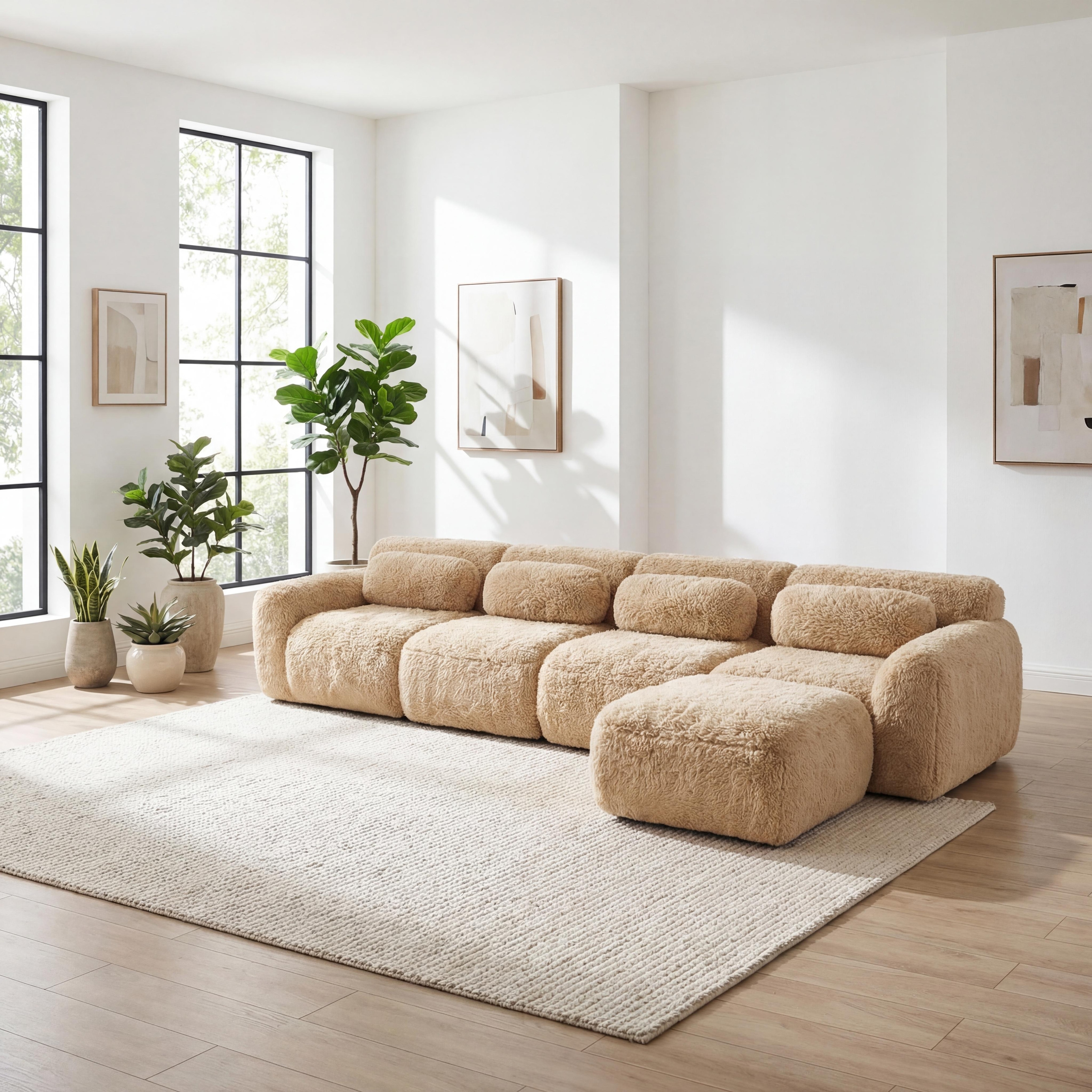 Homy Casa Light Khaki Modular Sectional Sofa, Soft Plush Fabric Cloud Couch with Anti-Slip Base & Decorative Pillows