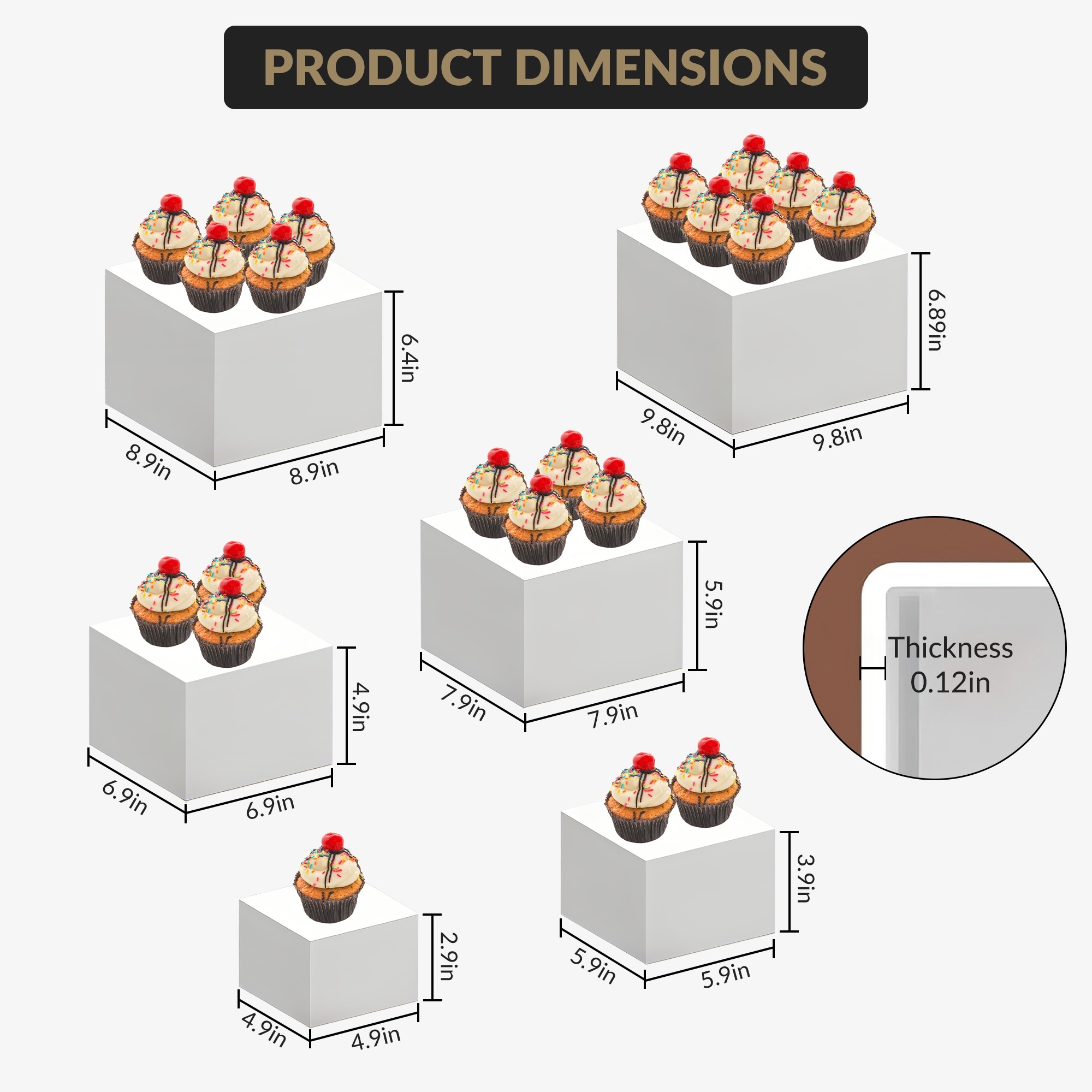 6-Piece White Stackable Display Risers – Multi-Sized Food Stands for Desserts, Bakery, Wedding, Buffet & Retail Display