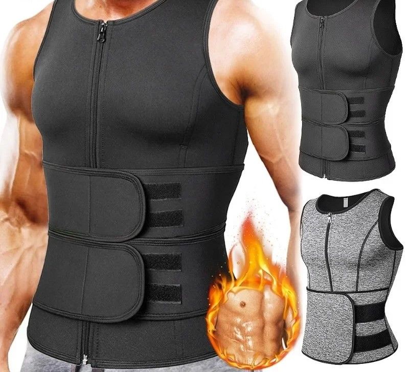 Men Body Shaper Compression Vest Sauna Sweat Slimming Workout Top black Two Belts xl