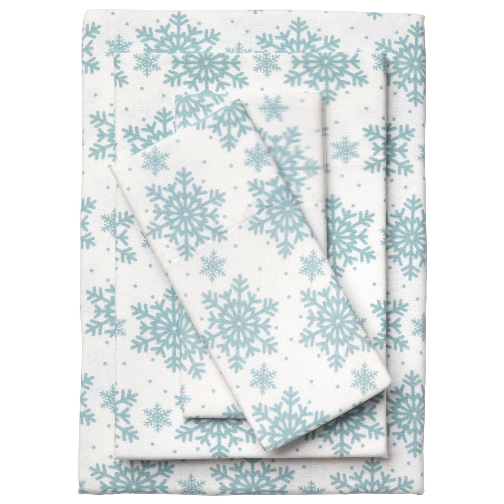 Cotton Flannel Print Sheet Set by BrylaneHome in Soft Blue Snowflake (Size KING)