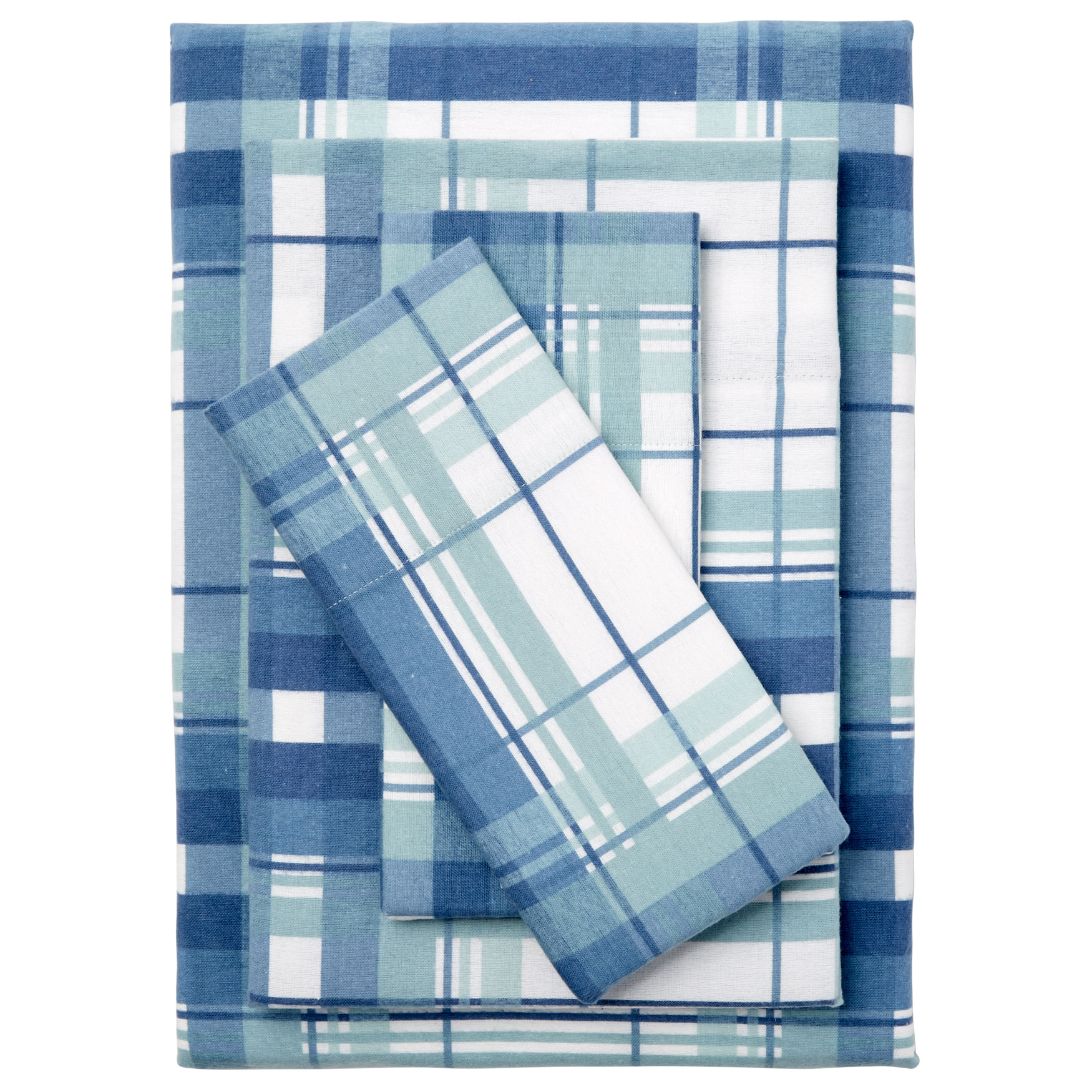 Cotton Flannel Print Sheet Set by BrylaneHome in Soft Blue Plaid (Size KING)