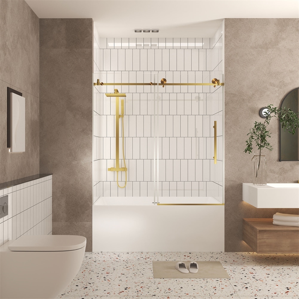 Frameless Shower Door 56-60 "W x 60" H,1/4"(6 mm) Clear Tempered Glass