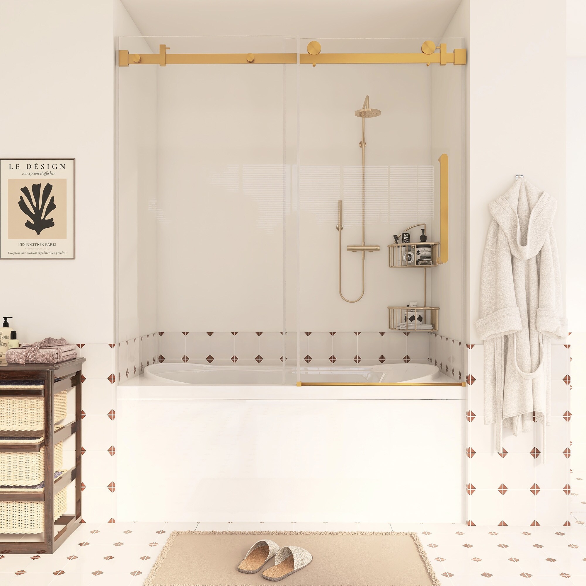 60 "W x 60" H Frameless Single Sliding Shower Door with Stainless Steel Handle - 60'' x 0.38'' x 60''
