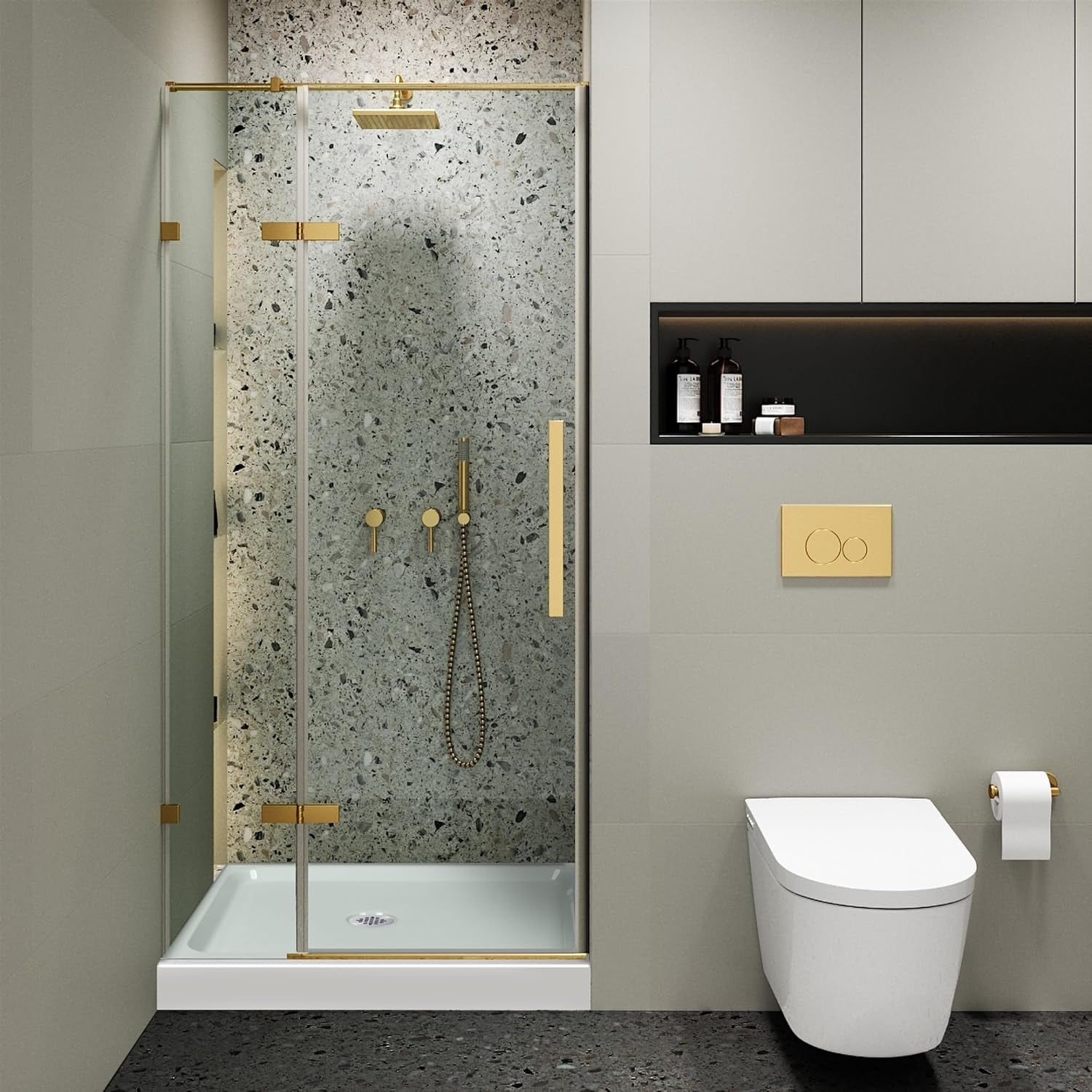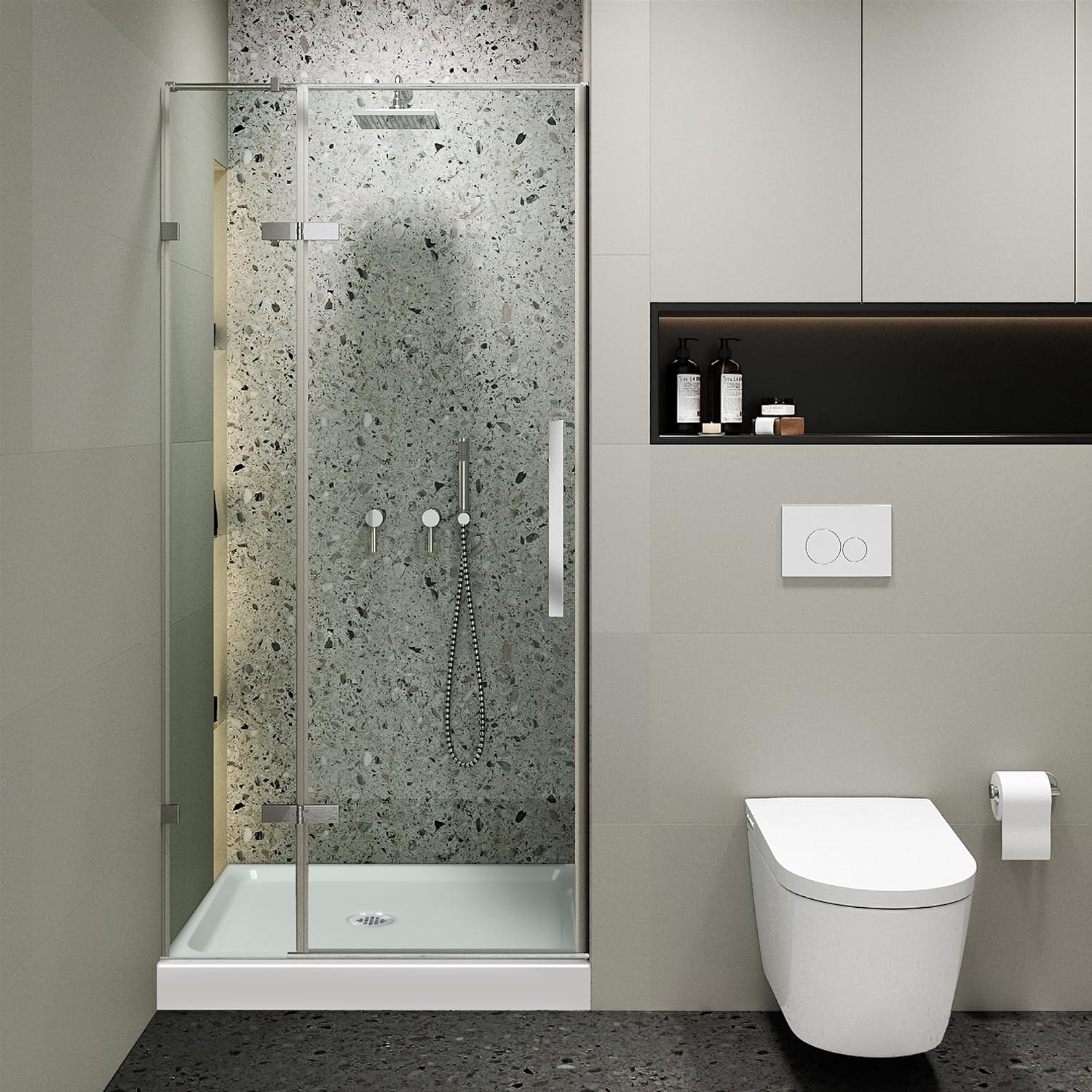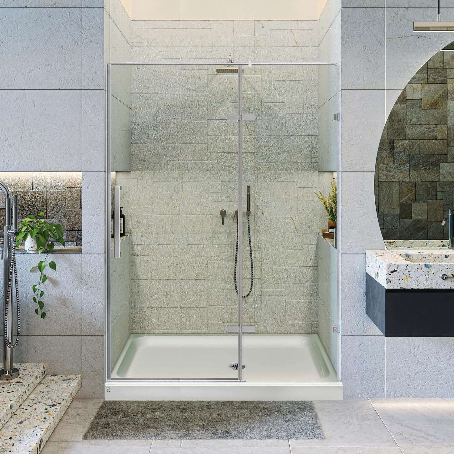 Frameless Clear Tempered Shower Glass Door with Shower Base Kit
