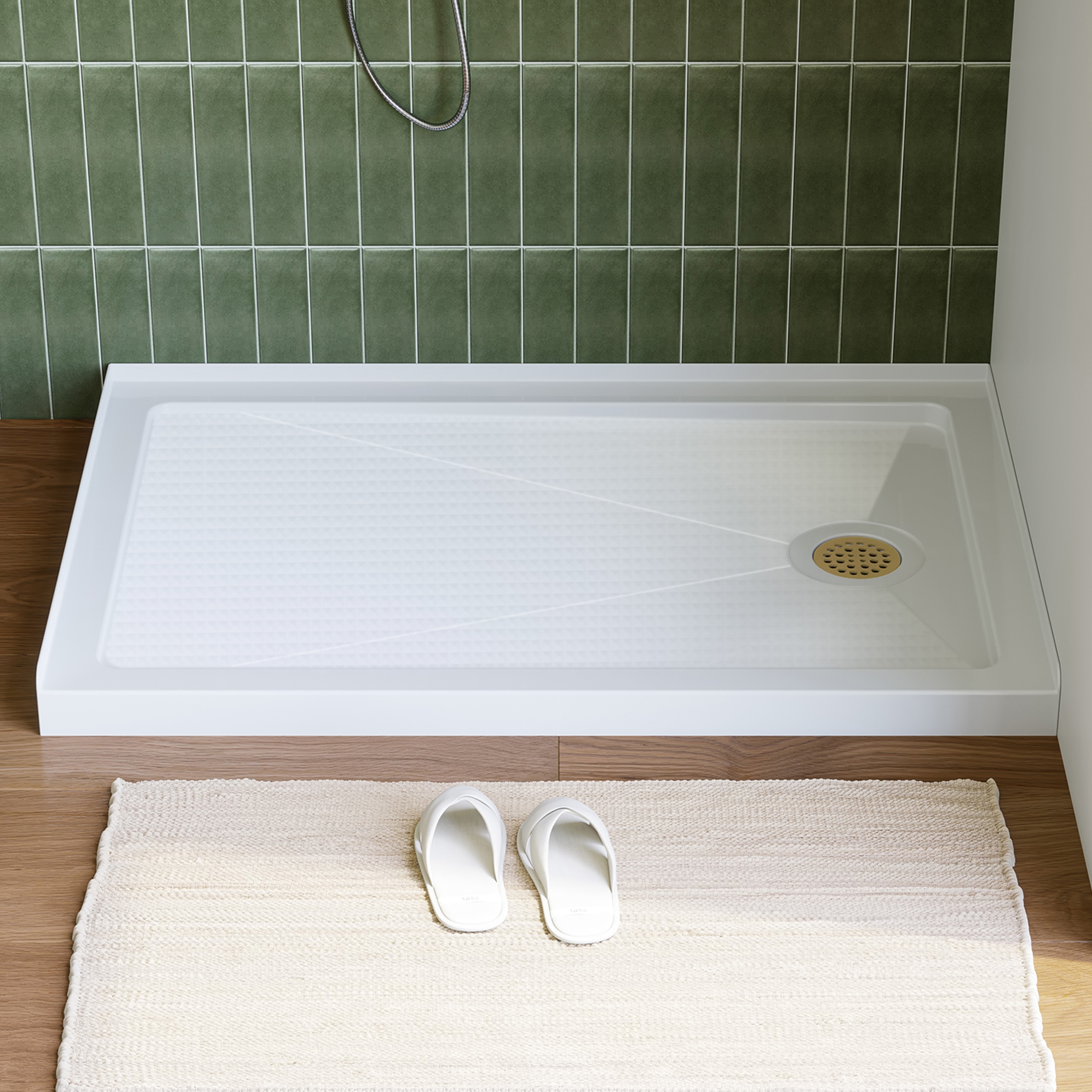 HOROW 48 x 32 Inch Alcove Shower Pan Base in White with Left Drain