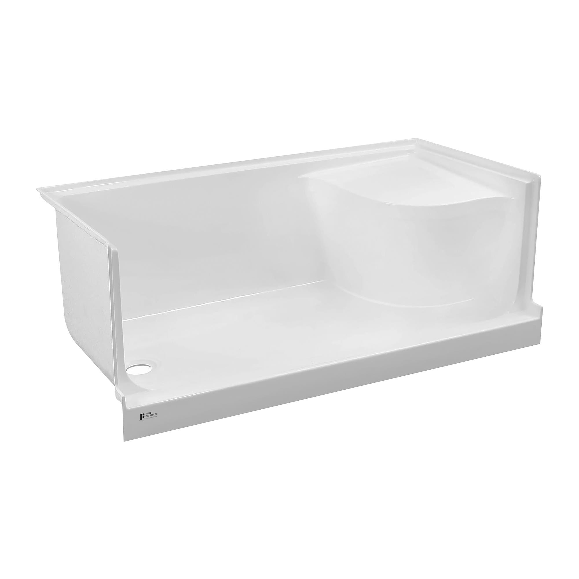 Fine Fixtures Single Threshold Acrylic Non-Slip Shower Base With Seat - 60 x 32