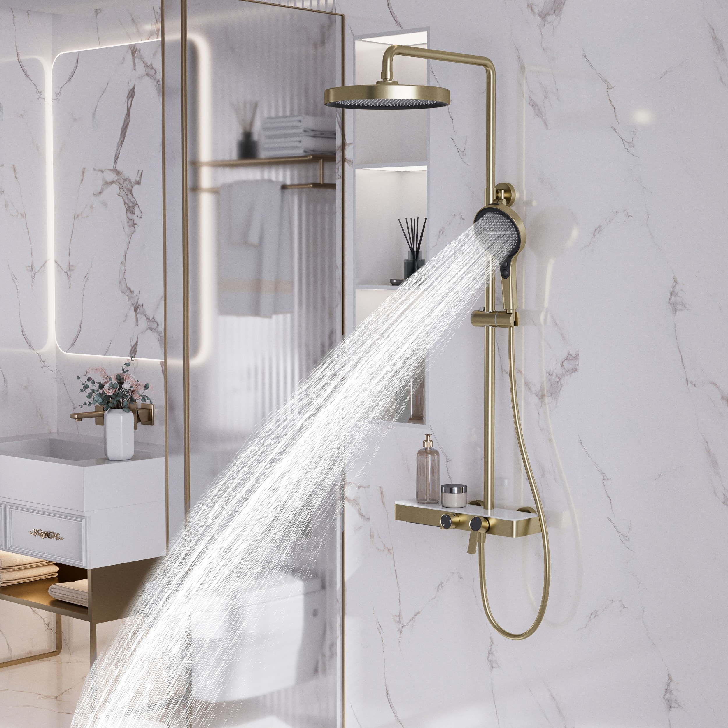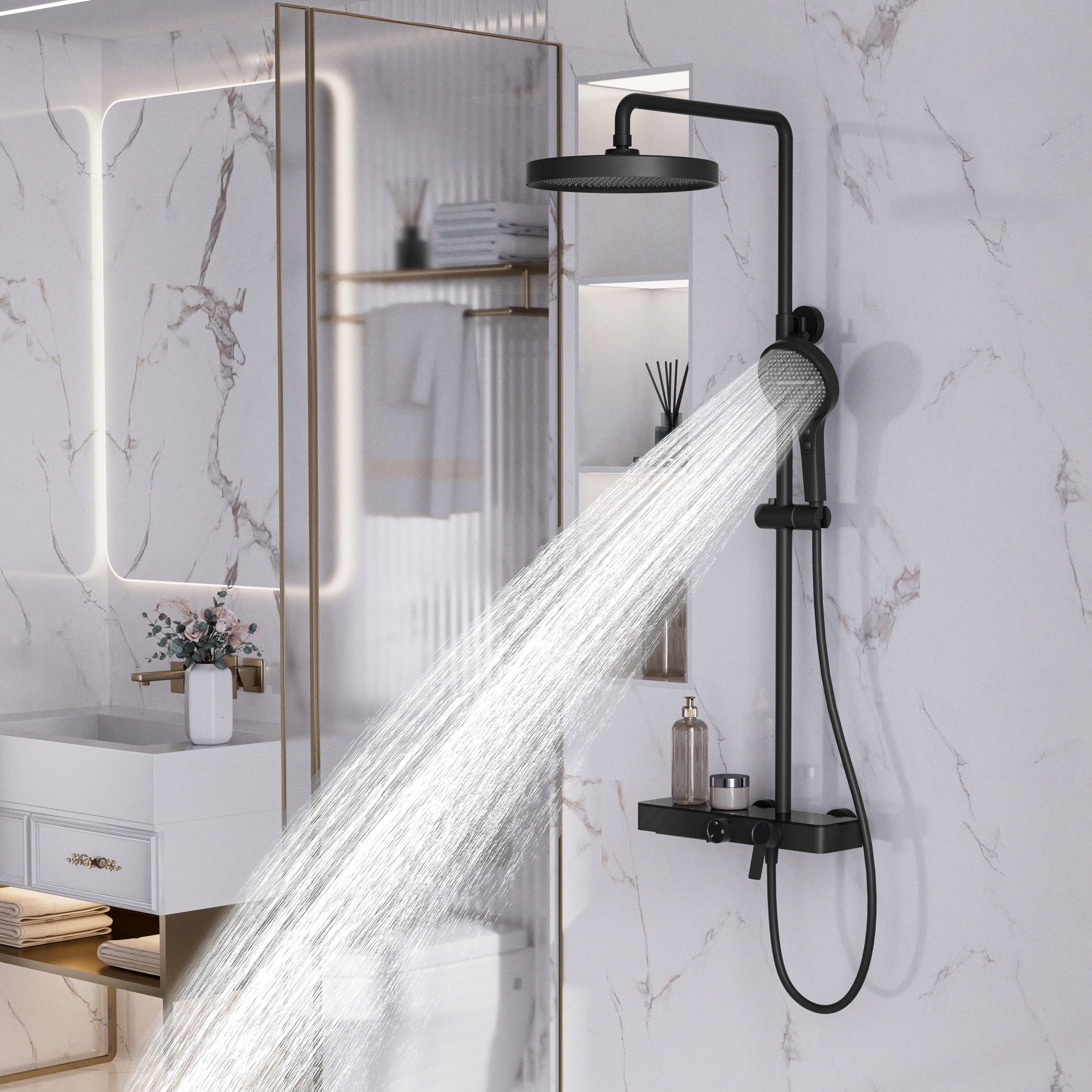 2-Function Pressure Balance Shower Faucet - 10'' Rainhead & 130mm Rainstorm Handheld