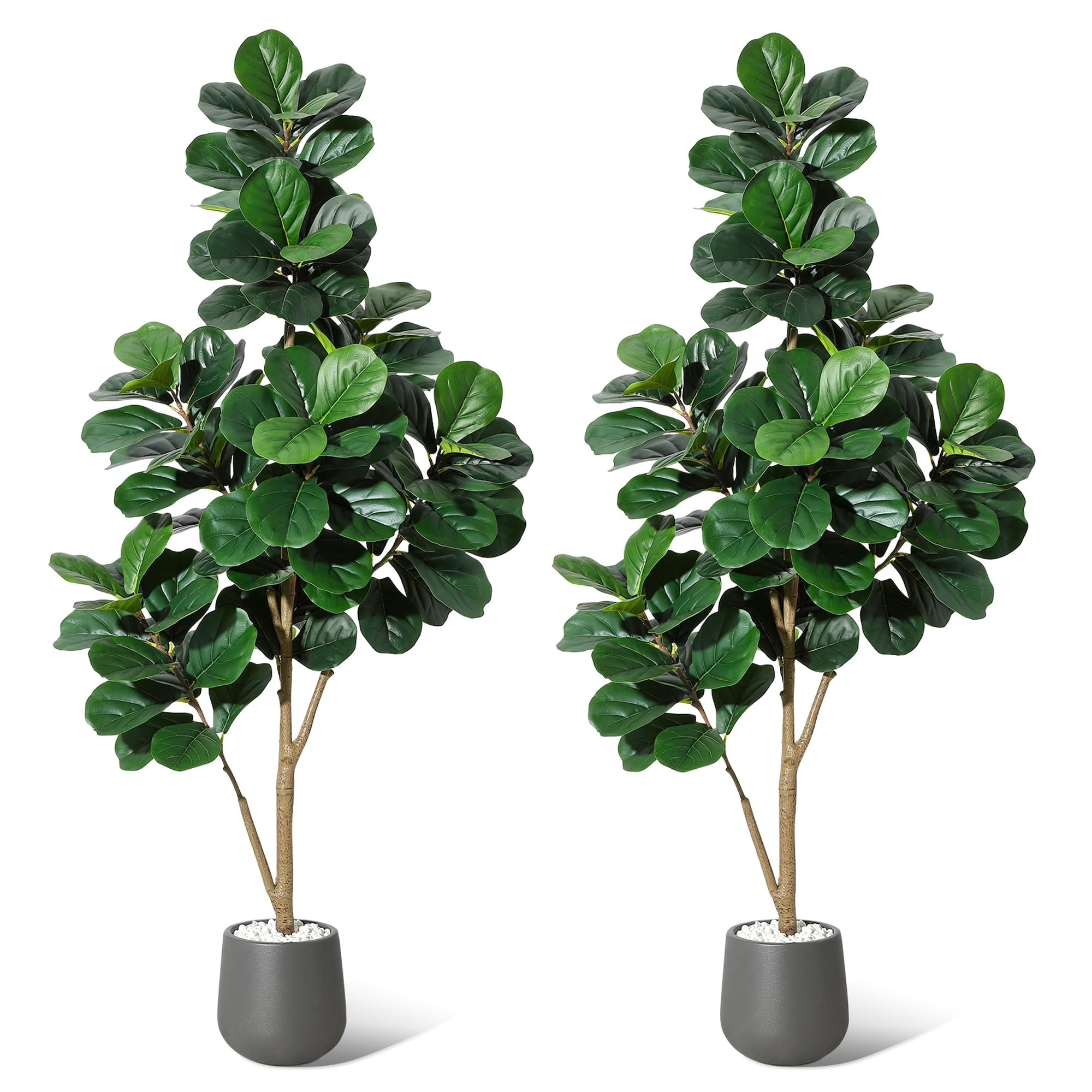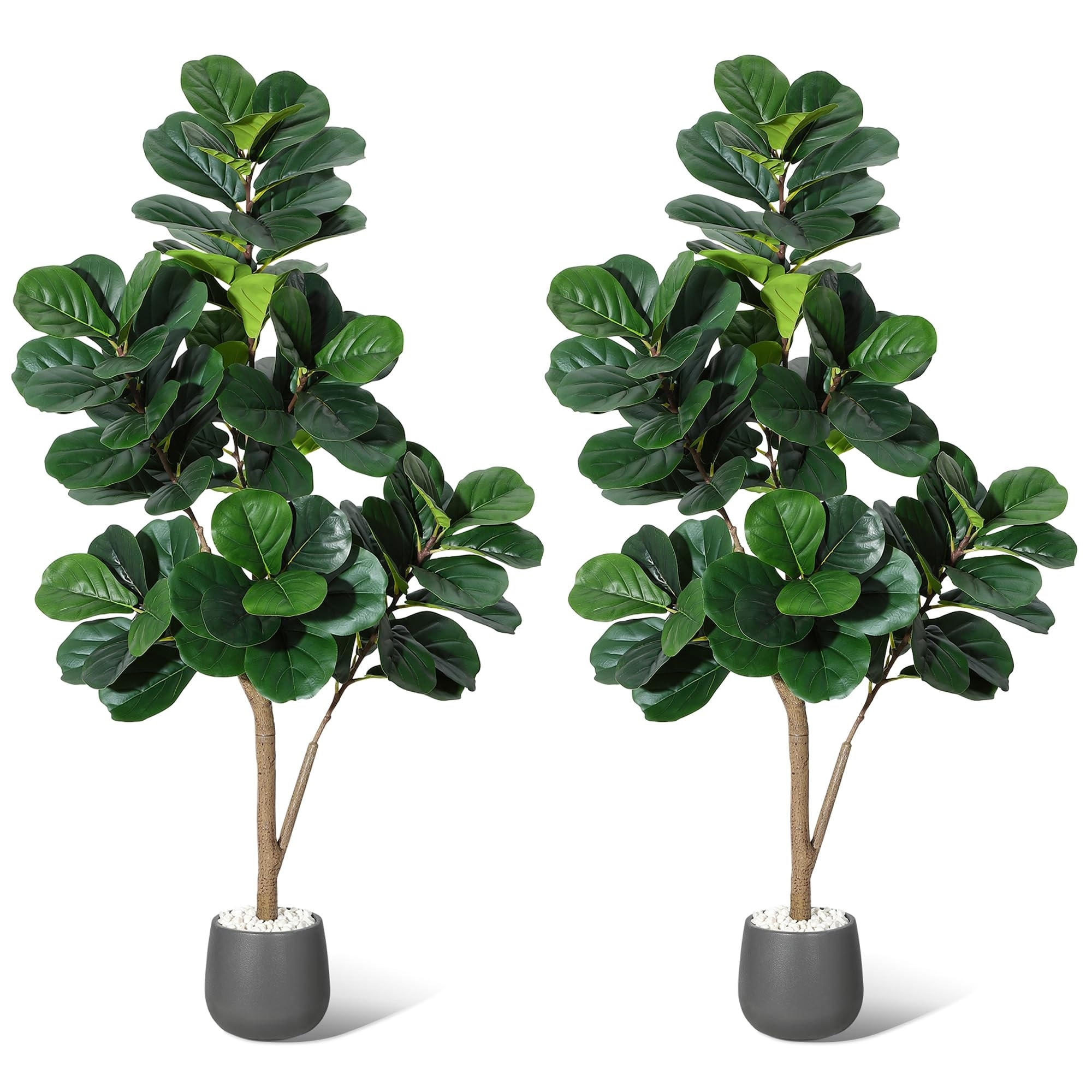 Fiddle Leaf Fig Tree Artificial with 48 Leaves - Realistic Faux Ficus Lyrata Trees in 7.8 in Grey Planter Pot