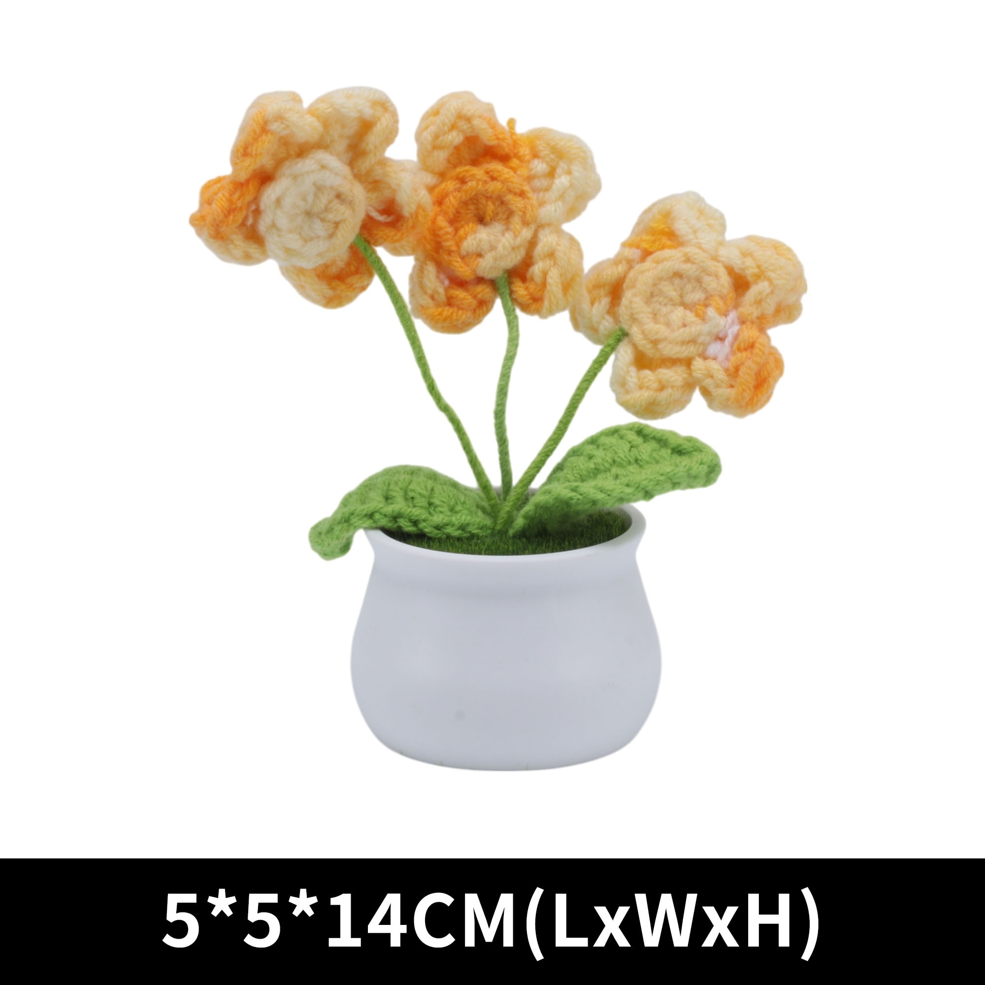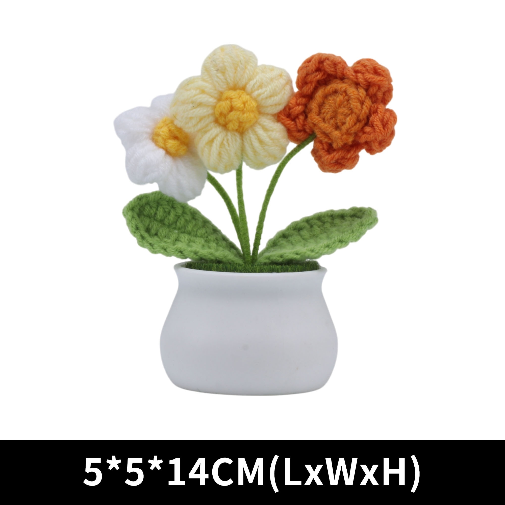 1 Pcs Artificial Plants Hand-Knit Puff Flower Pot DIY Kit Yarn White Blue 5x5x14cm