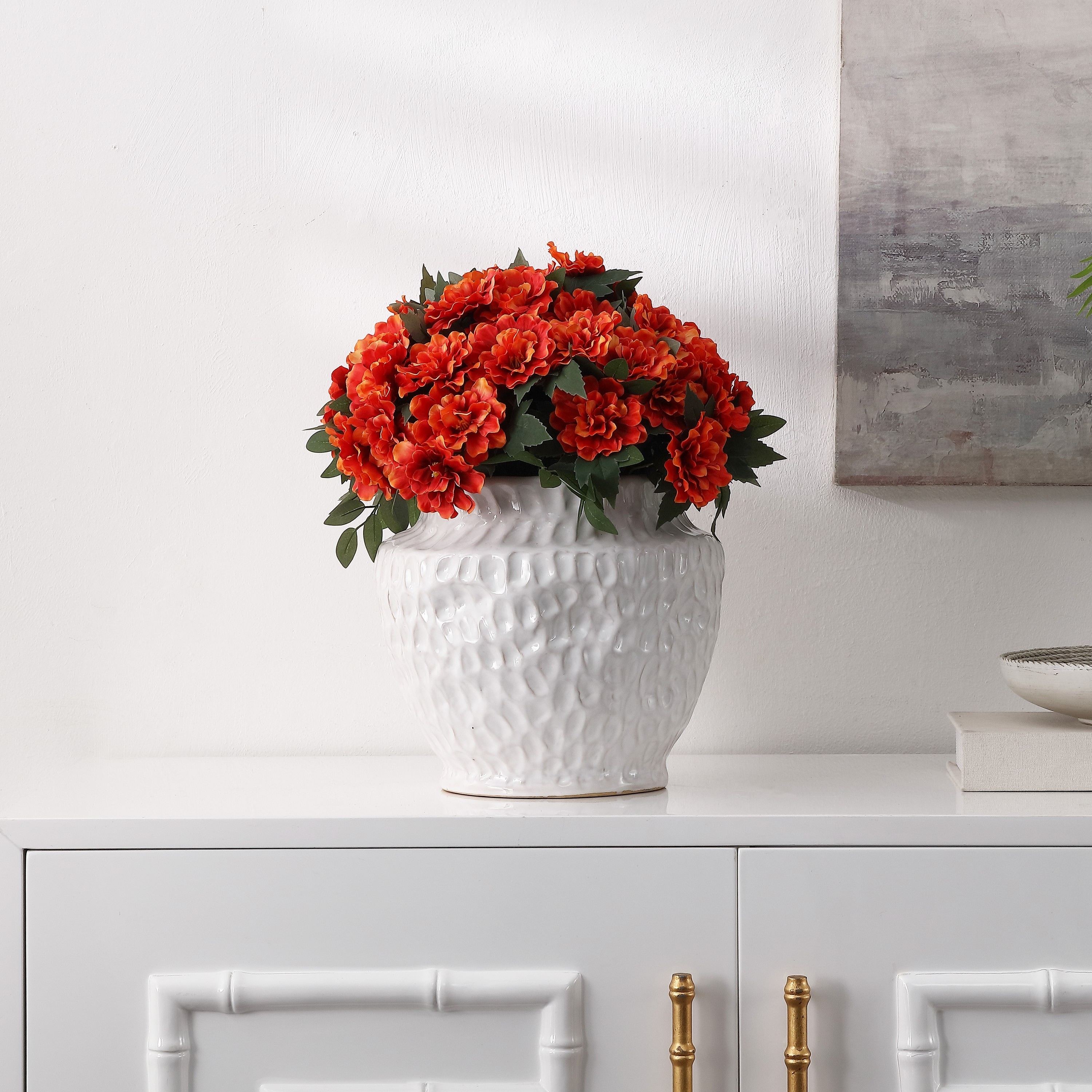 SAFAVIEH Home Faux 18-inch Marigold Potted Arg - 12"W x 12"D x 11"H