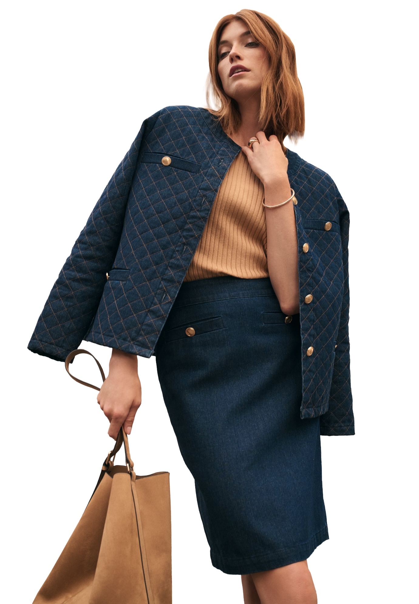 Plus Size Women's Stretch Denim Jegging Skirt by Jessica London in Creamy Mocha (Size 14) Flared Stretch Denim w/ Vertical Seams