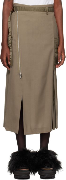 Khaki Suiting & Nylon Twill Midi Skirt - Black - Sacai Skirts