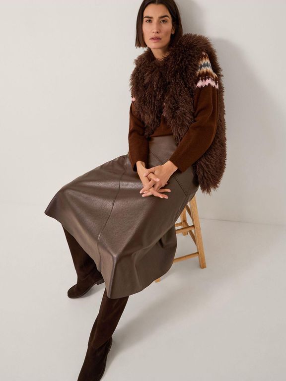 Marnie Faux Leather Midi Skirt - Brown - Monsoon Skirts