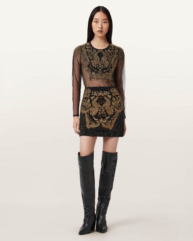 Polyester Jamilia Embellished Mini Skirt, /Us 2 - Natural - AllSaints Skirts