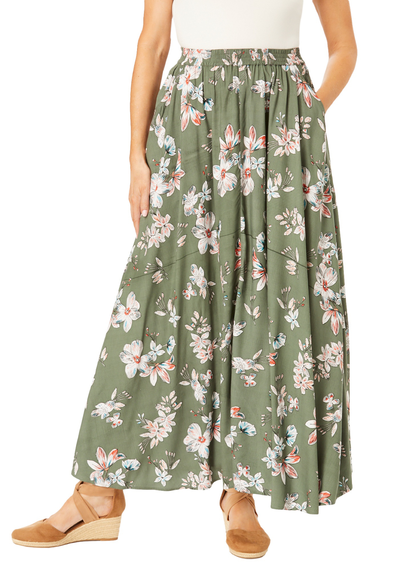 Plus Size Women's Pull-On Elastic Waist Soft Maxi Skirt by Woman Within in Pine Blossom (Size 16 W)