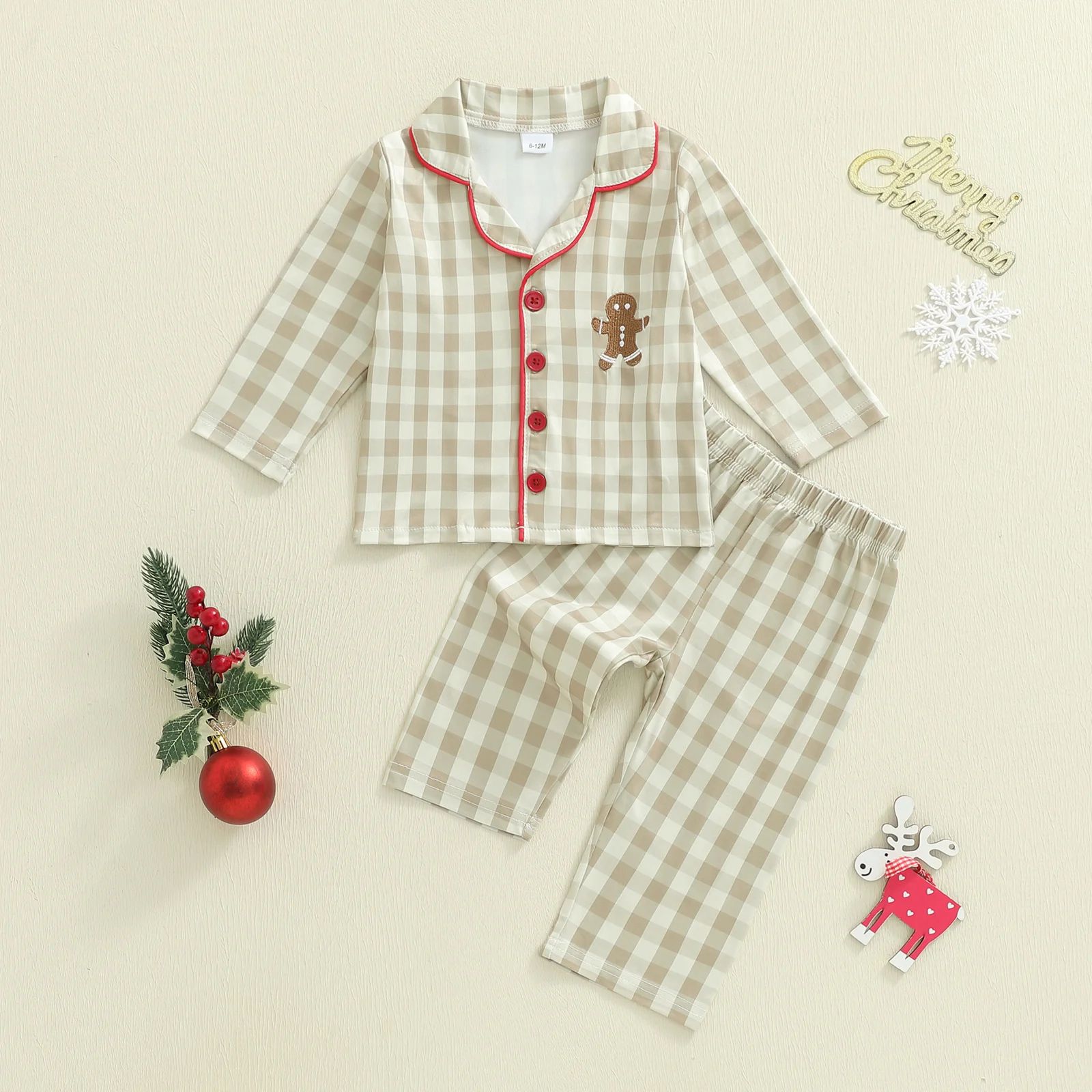 Cozy Gingerbread Plaid Christmas Baby Pajamas 2 Piece Toddler Holiday Sleepwear Set 12m