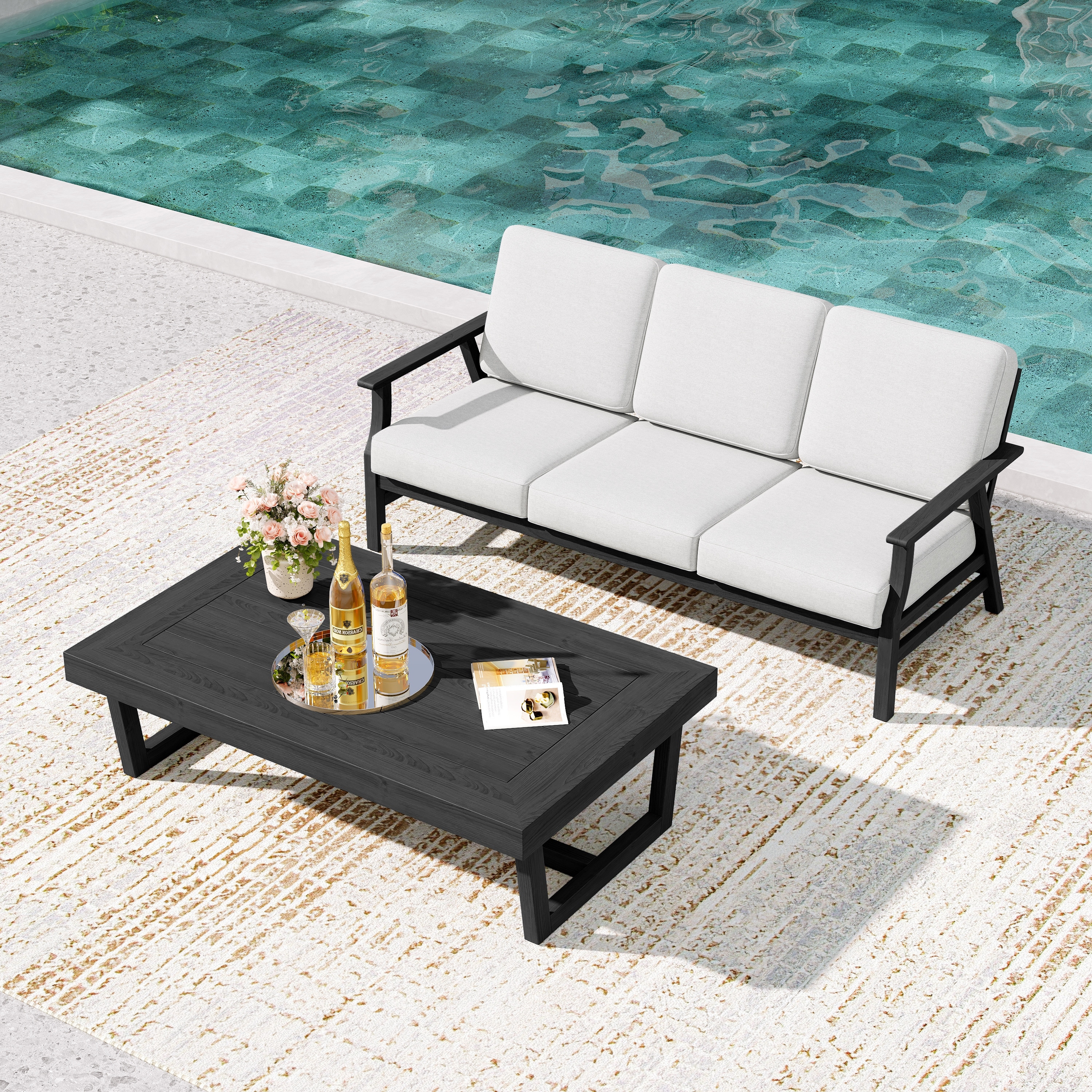 vidaXL Garden Sofa Set Black, Cream White - 135.4 x 67.7 x 33.5
