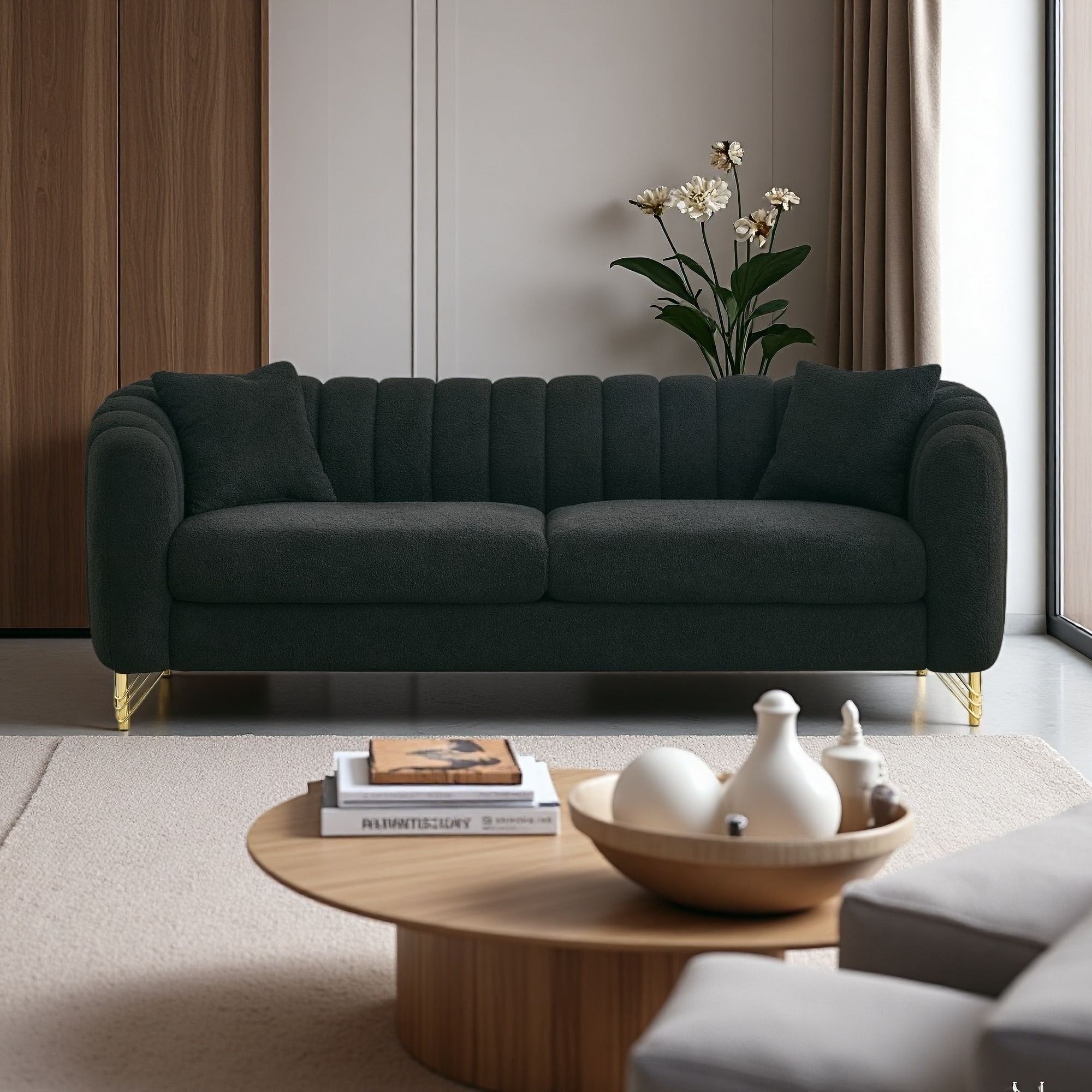 78.74" Circle Fleece Fabric Boneless Modular Sectional Sofa with Ottoman and Memory Foam (2-Seater)