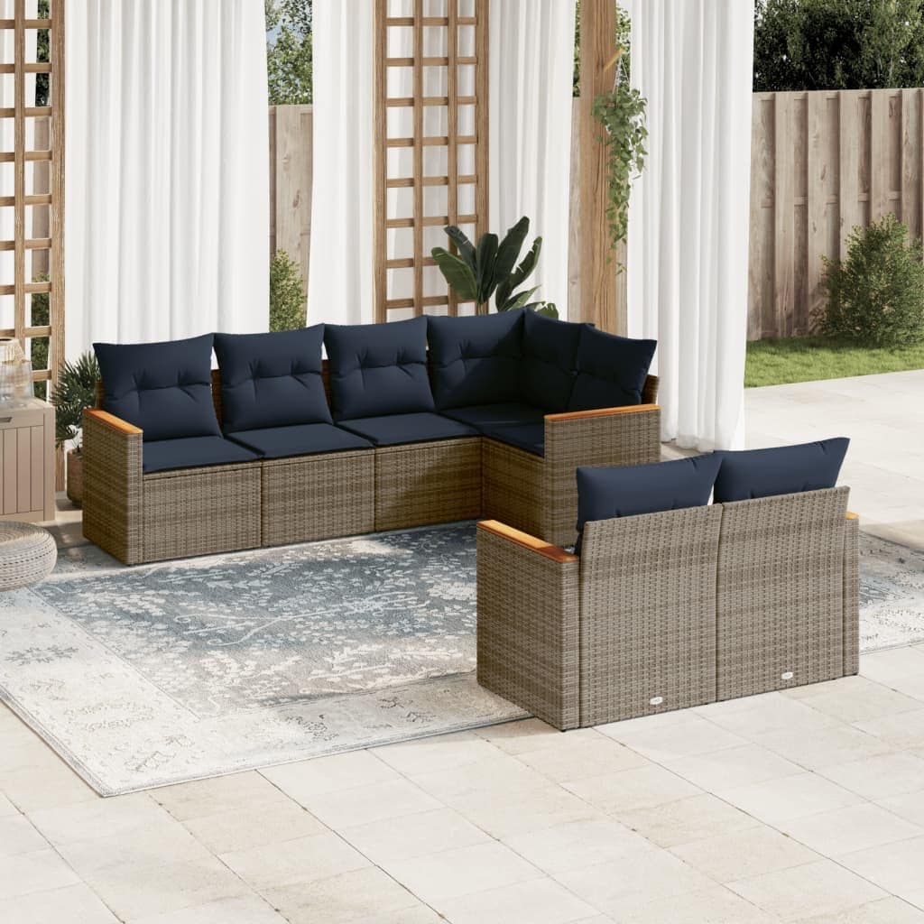 vidaXL 7 Piece Patio Sofa Set with Cushions Grey Poly Rattan - 24.4x 24.4x 27.2