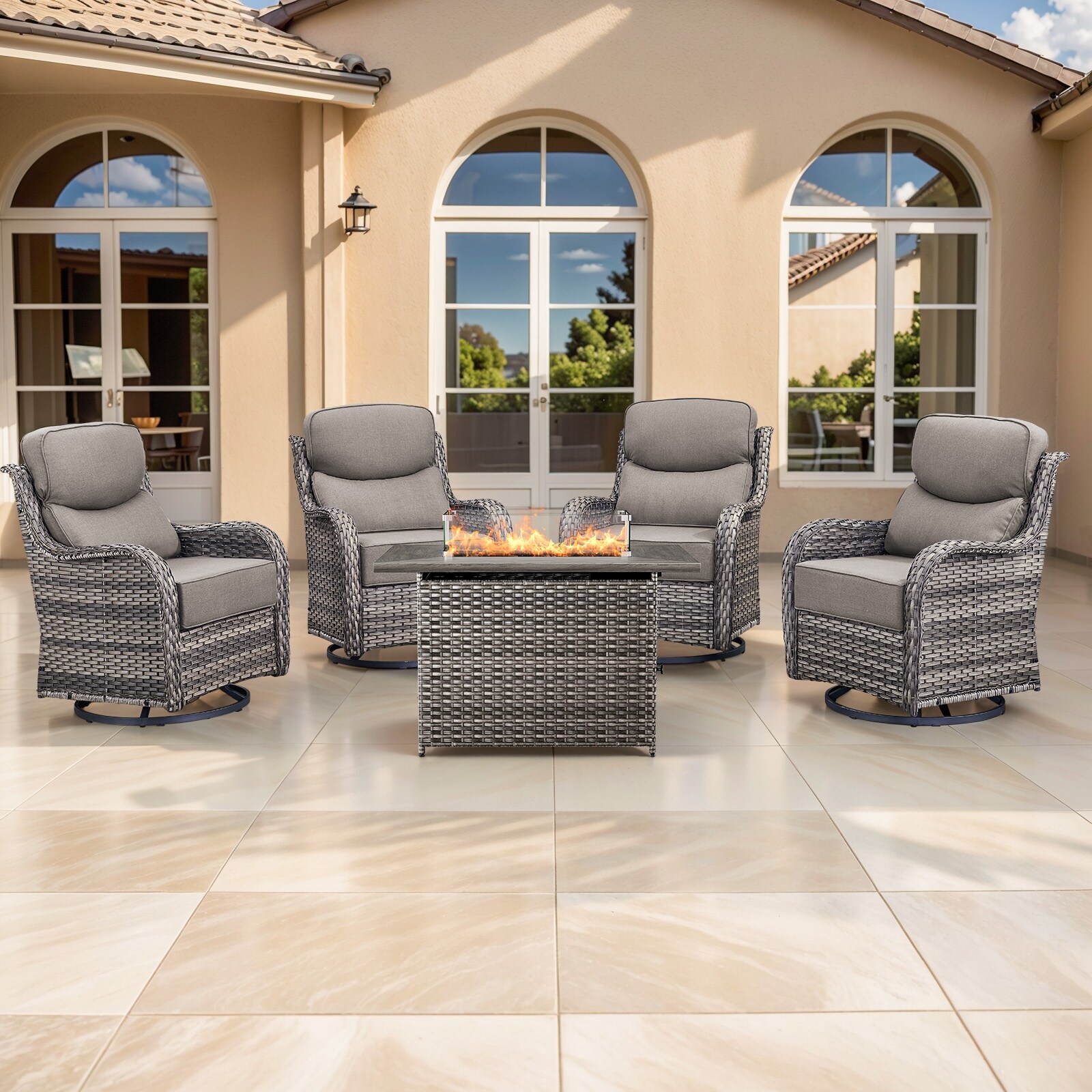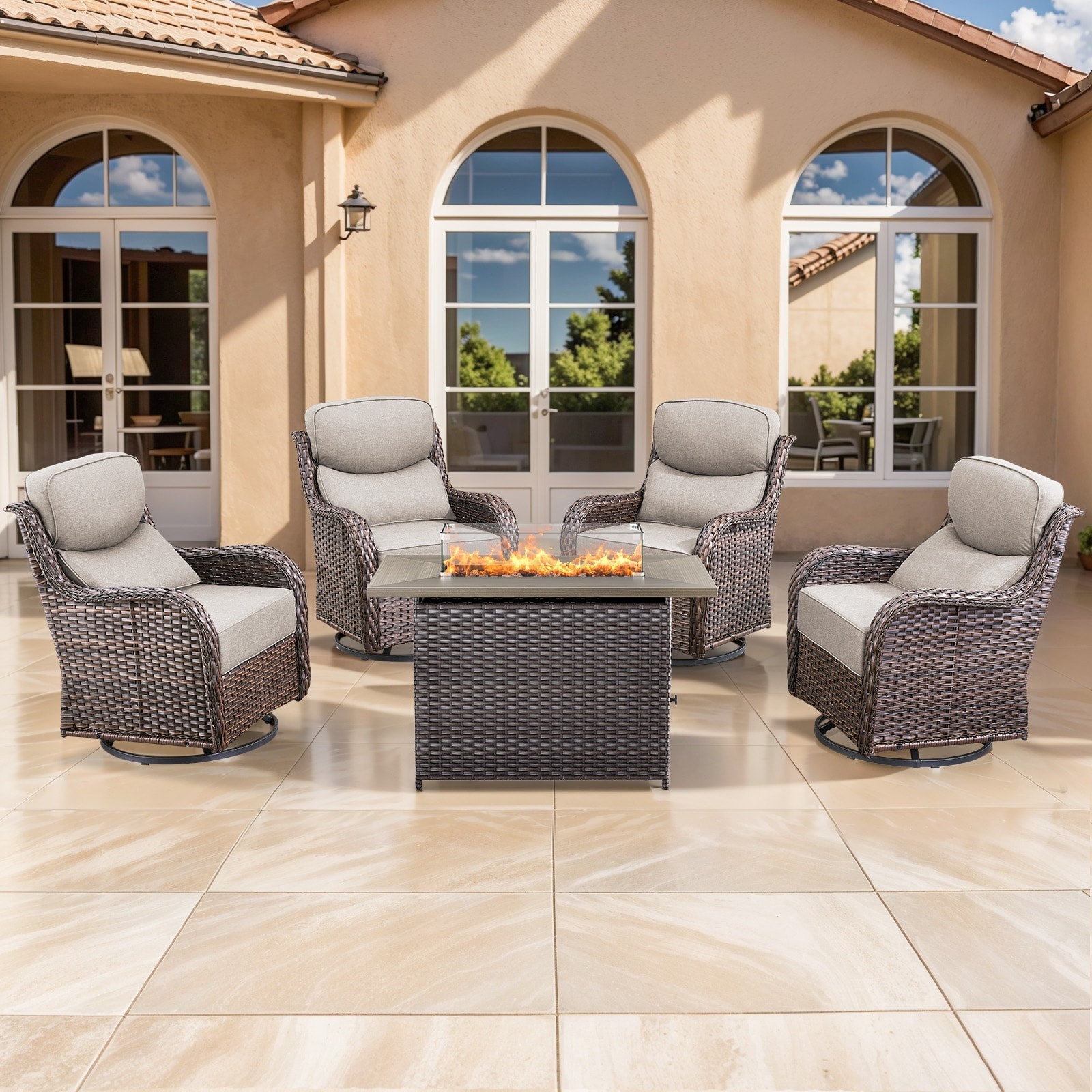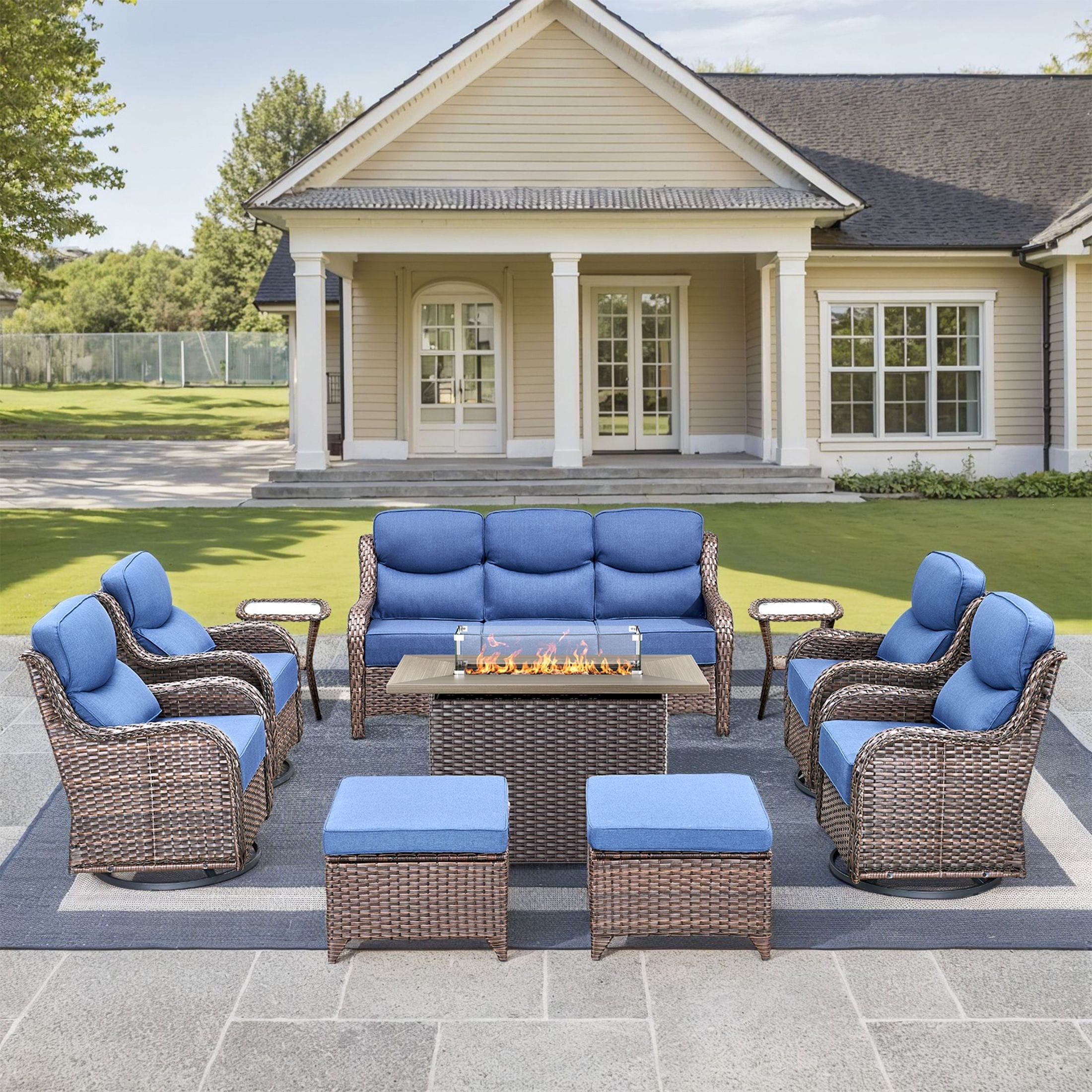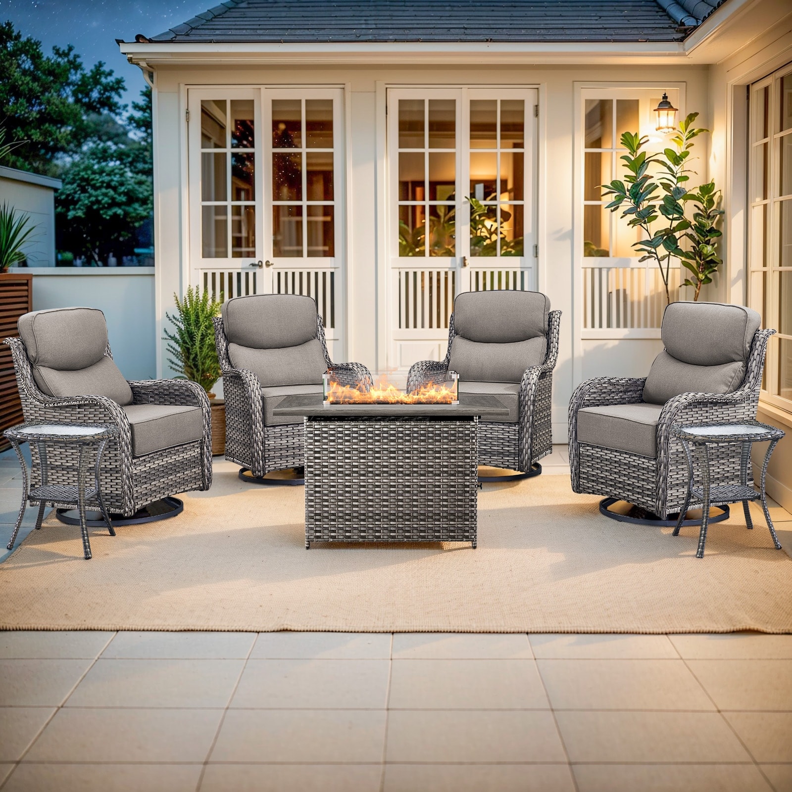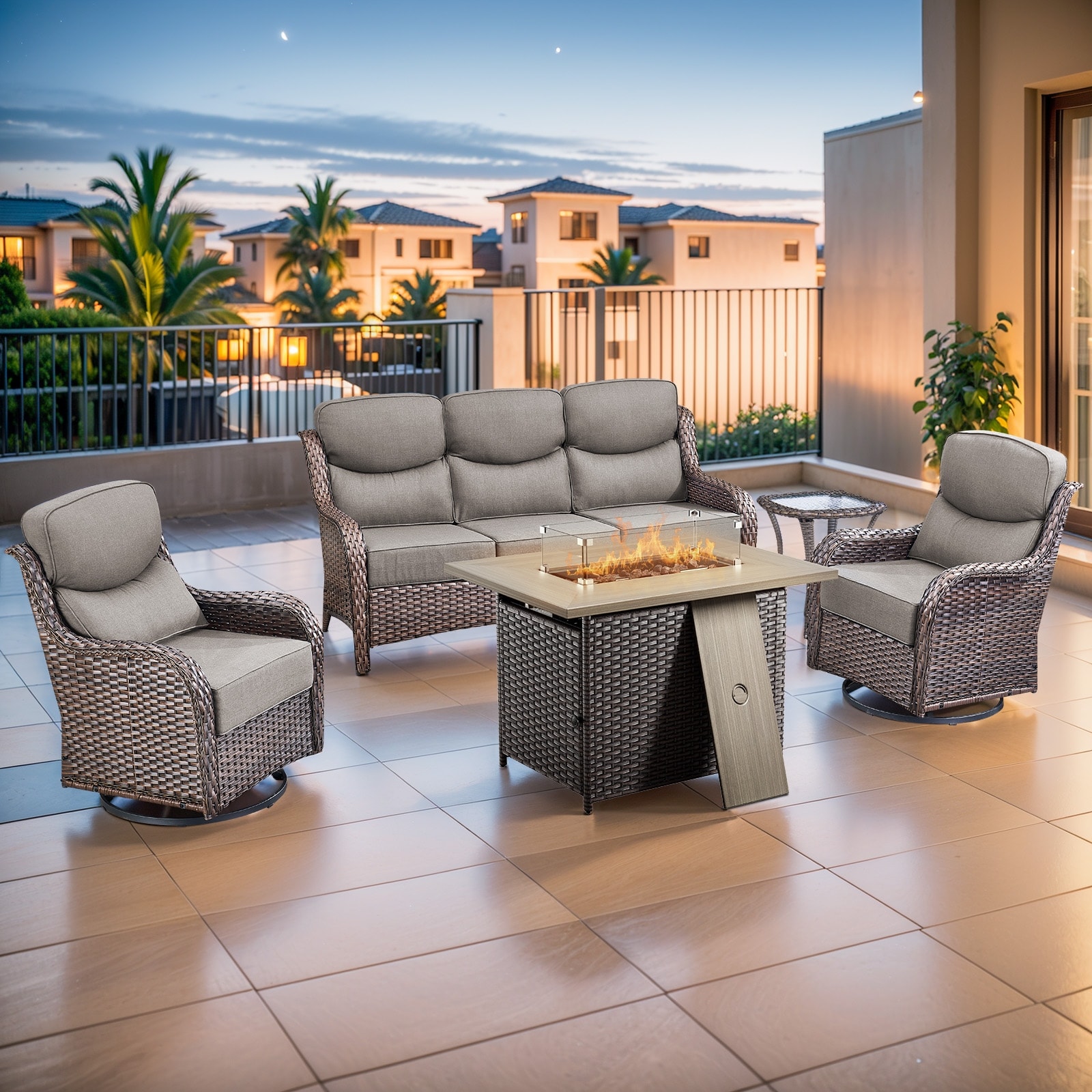 Pocassy Outdoor 6 Inch Sofa Chair Ottoman with Fire Pit Table Set