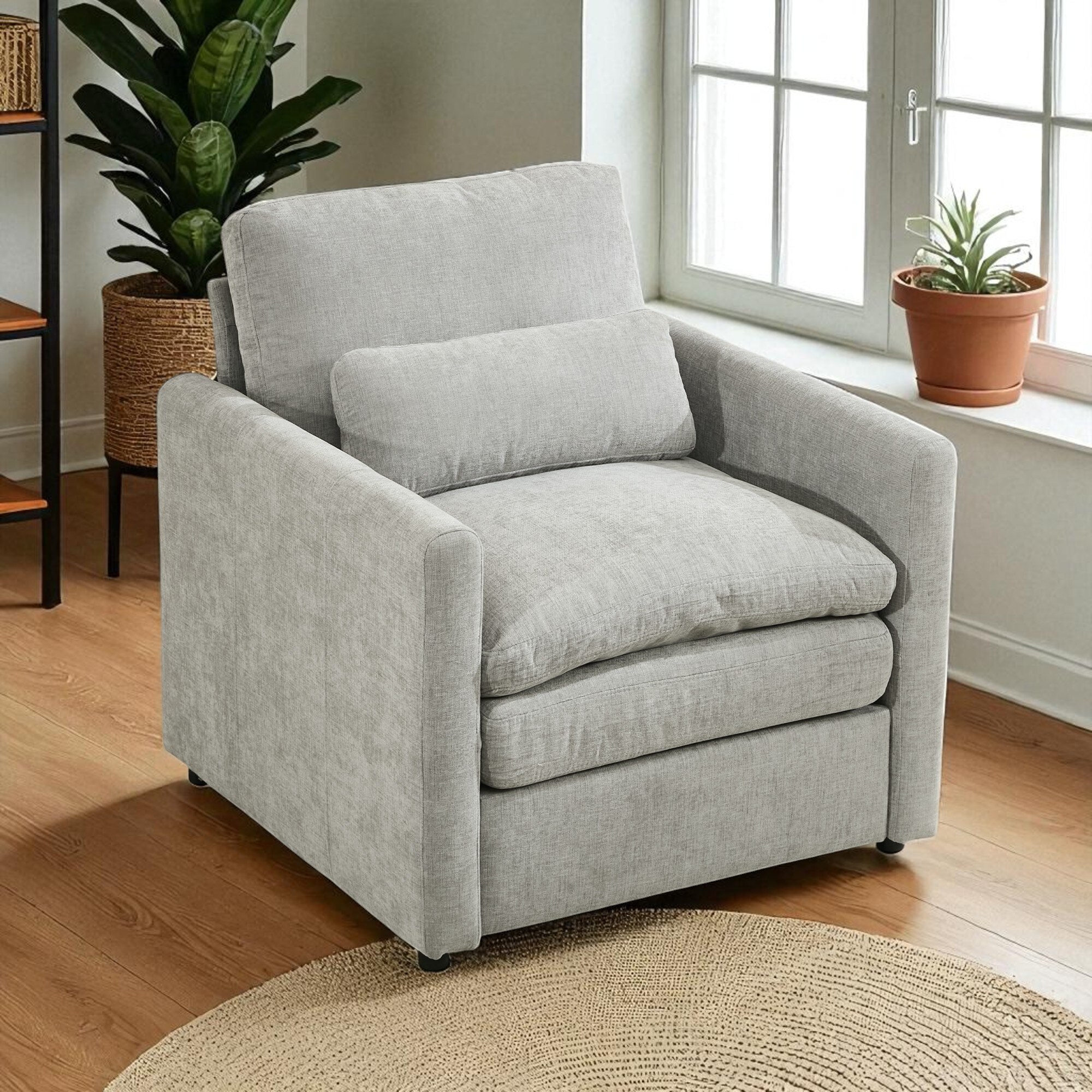 Chenille Fabric Armchair with Double-Layer Cushion, Lumbar Pillow, Deep Seat and Curved Armrests