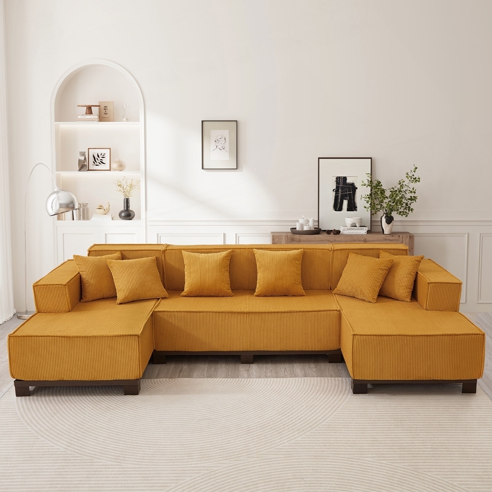 L-Shaped Modular Sectional Sofa with Chaise, Oversized Corduroy Upholstered 3 Seater Sofa, Deep Seat Cloud Couch with 6 Pillows