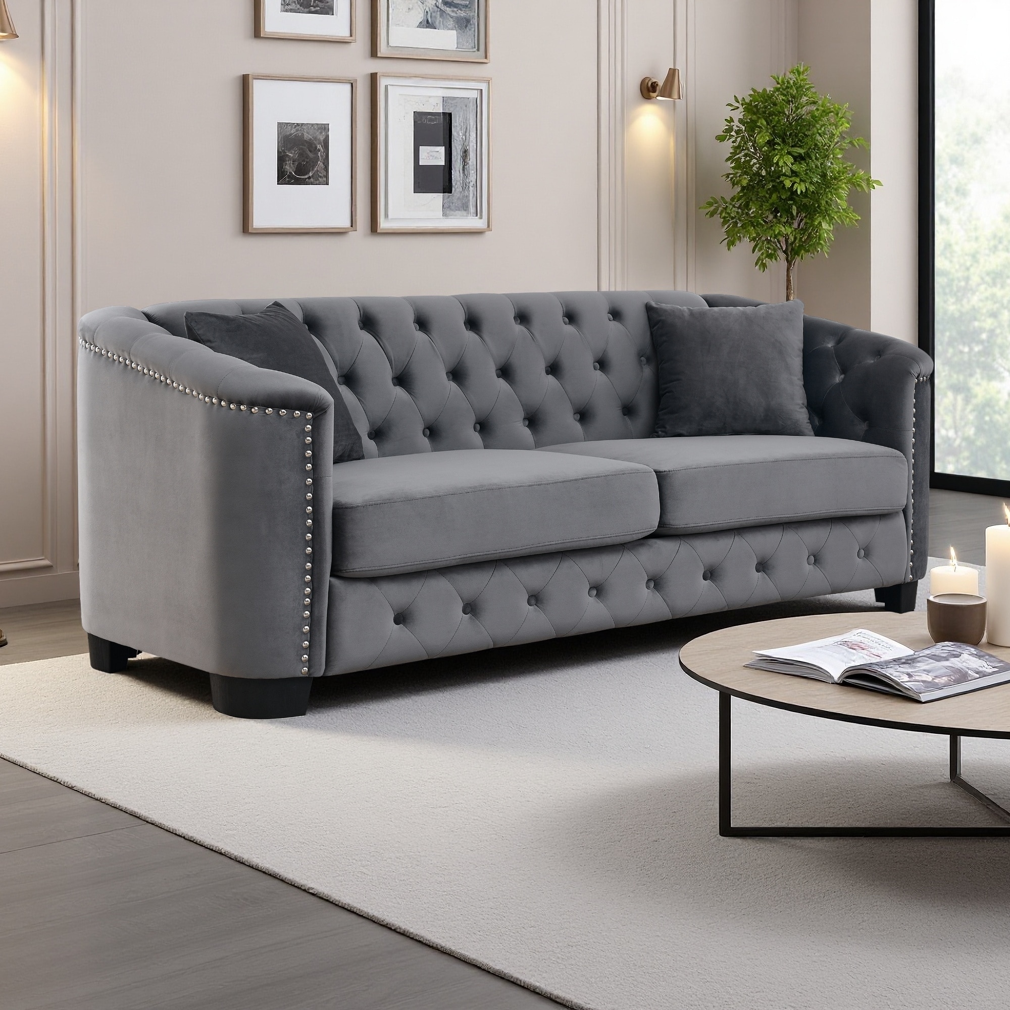 77-Inch Velvet Chesterfield Sofa, 3-Seater with Nailhead Trim and Tufted Backrest, Removable Cushions, for Living Room, Bedroom