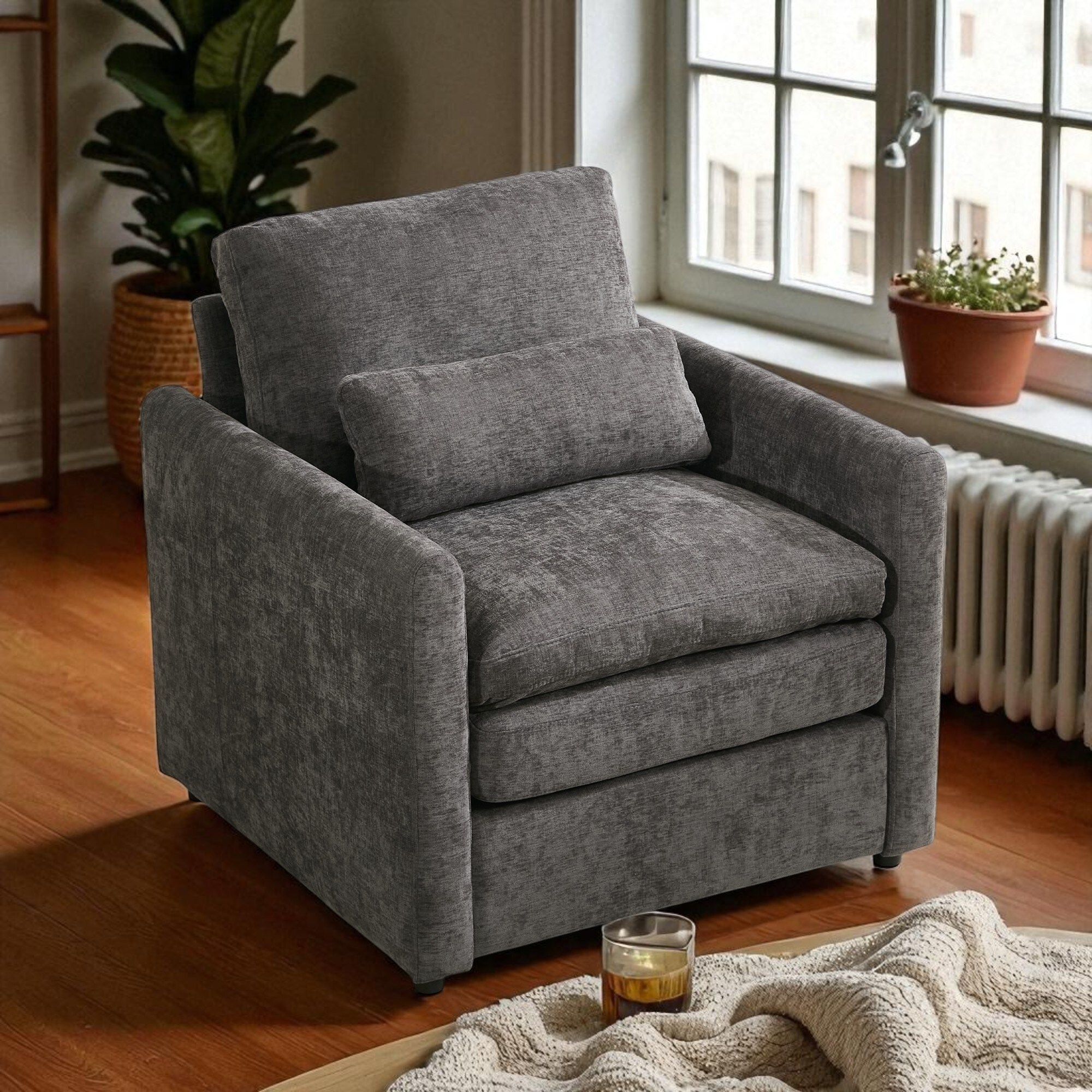 Chenille Fabric Armchair with Double-Layer Cushion, Lumbar Pillow, Deep Seat and Curved Armrests