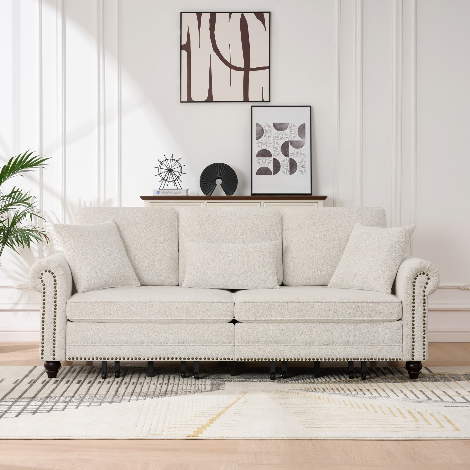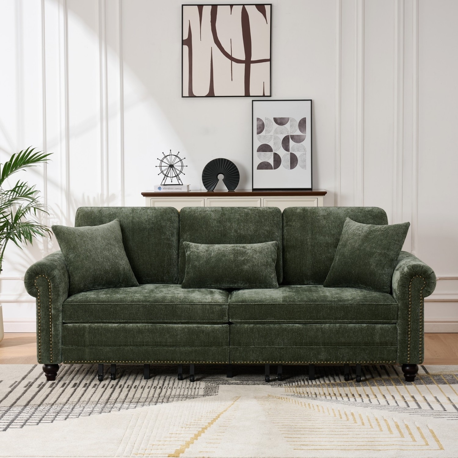 86.5" Chenille Sofa with Rolled Arms, Nailhead Trim and Pull Out Bed
