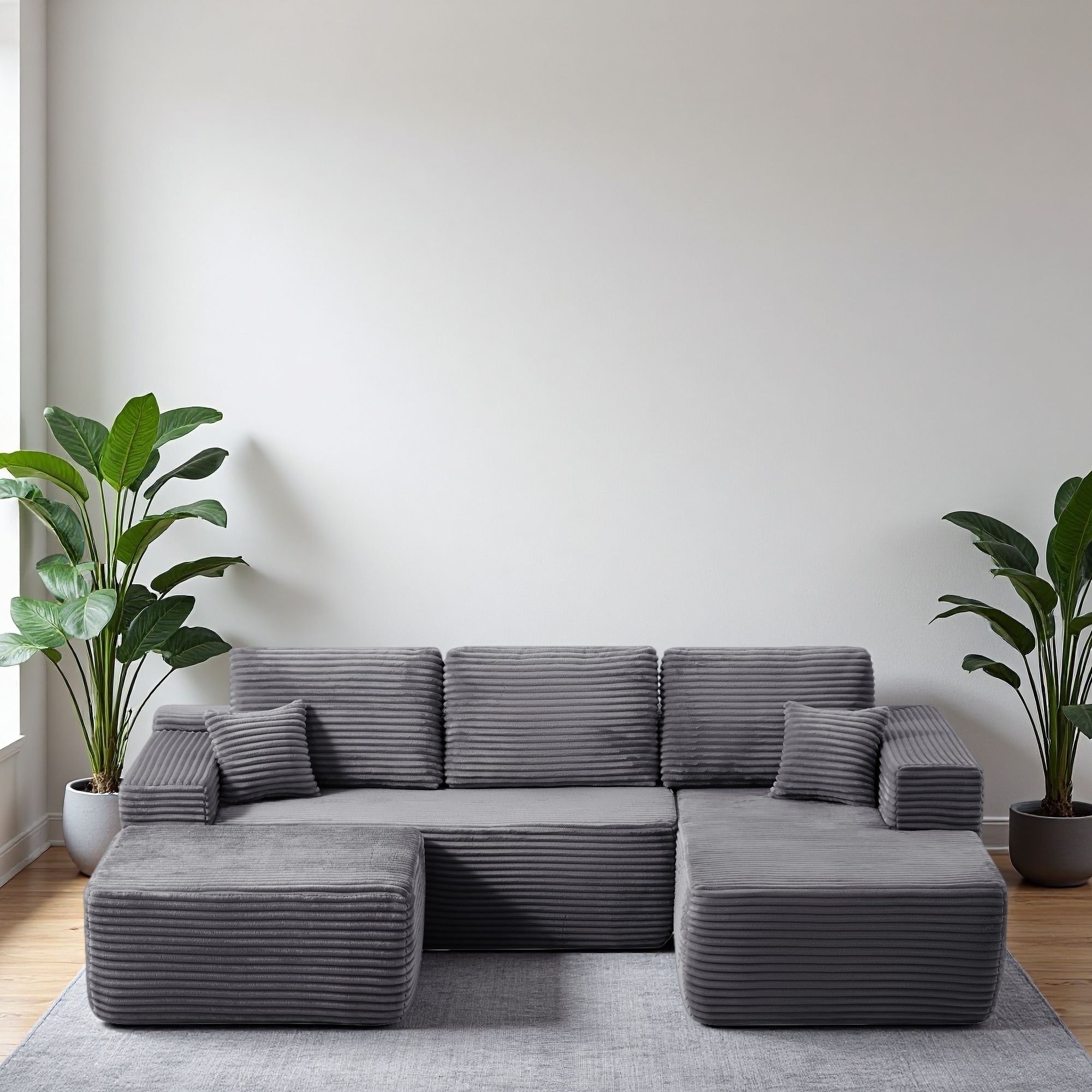 Corduroy Modular Sectional Sofa with Ottoman for Living Room Seating