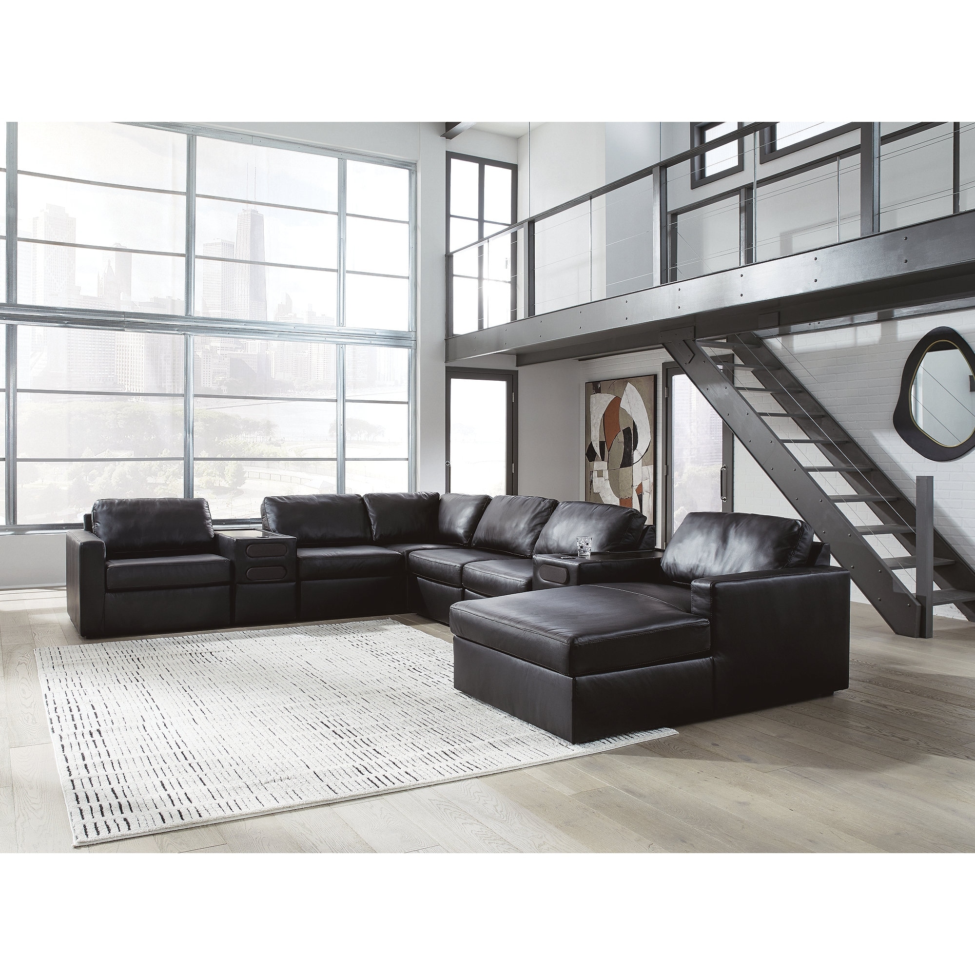 Signature Design by Ashley Modmax II Black 8-Piece Sectional with Chaise and Audio Consoles