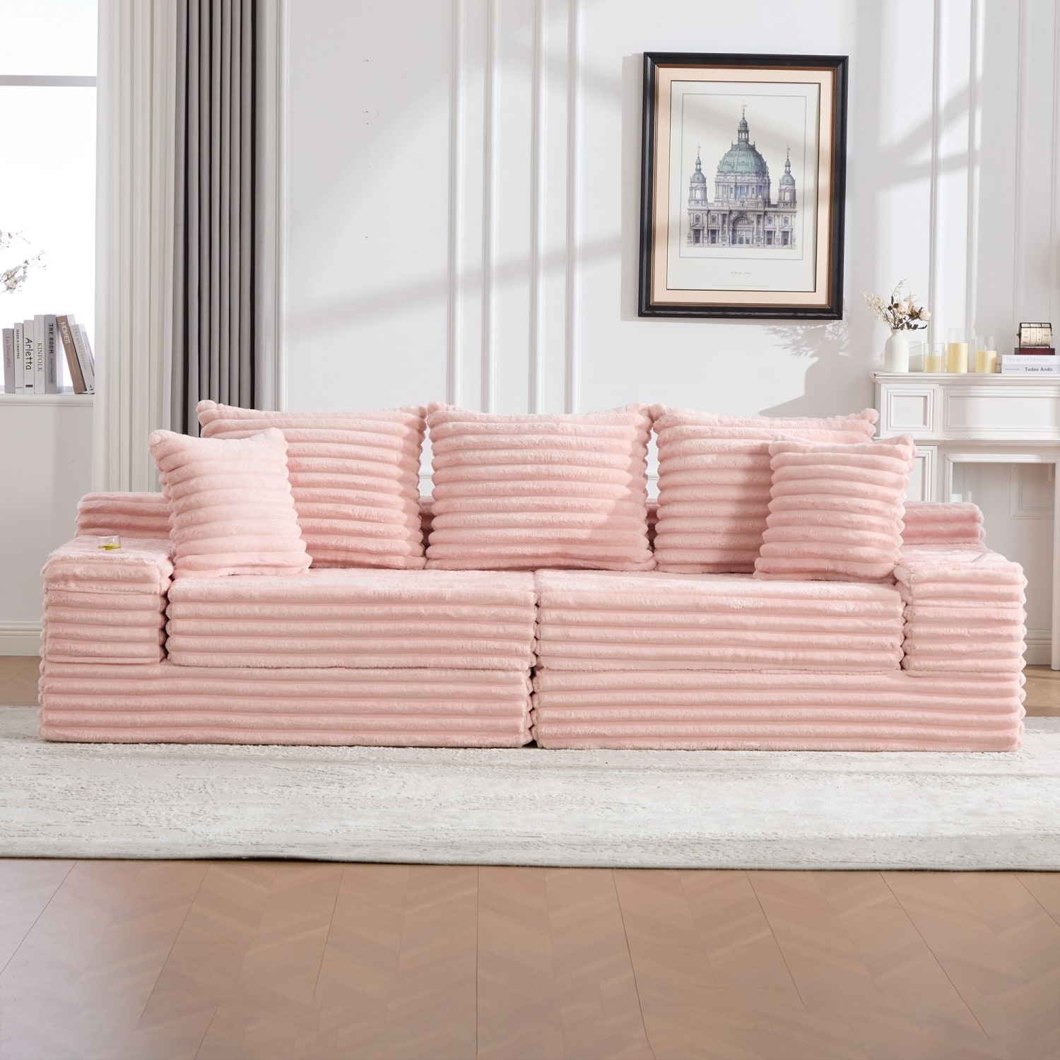 107.48" Corduroy Sectional Sofa with Pillows, No Assembly Required
