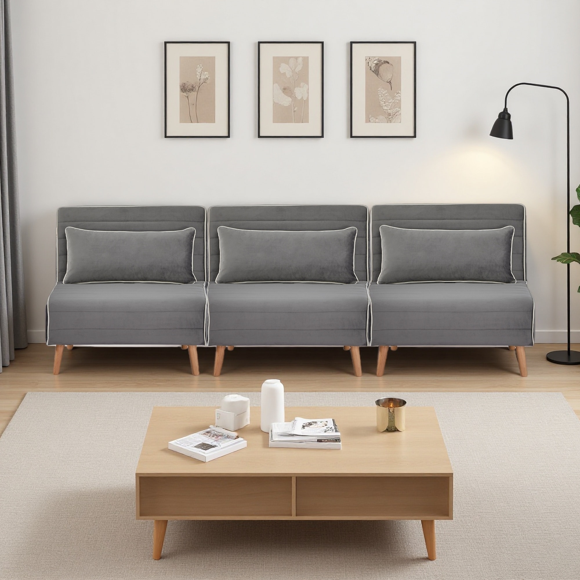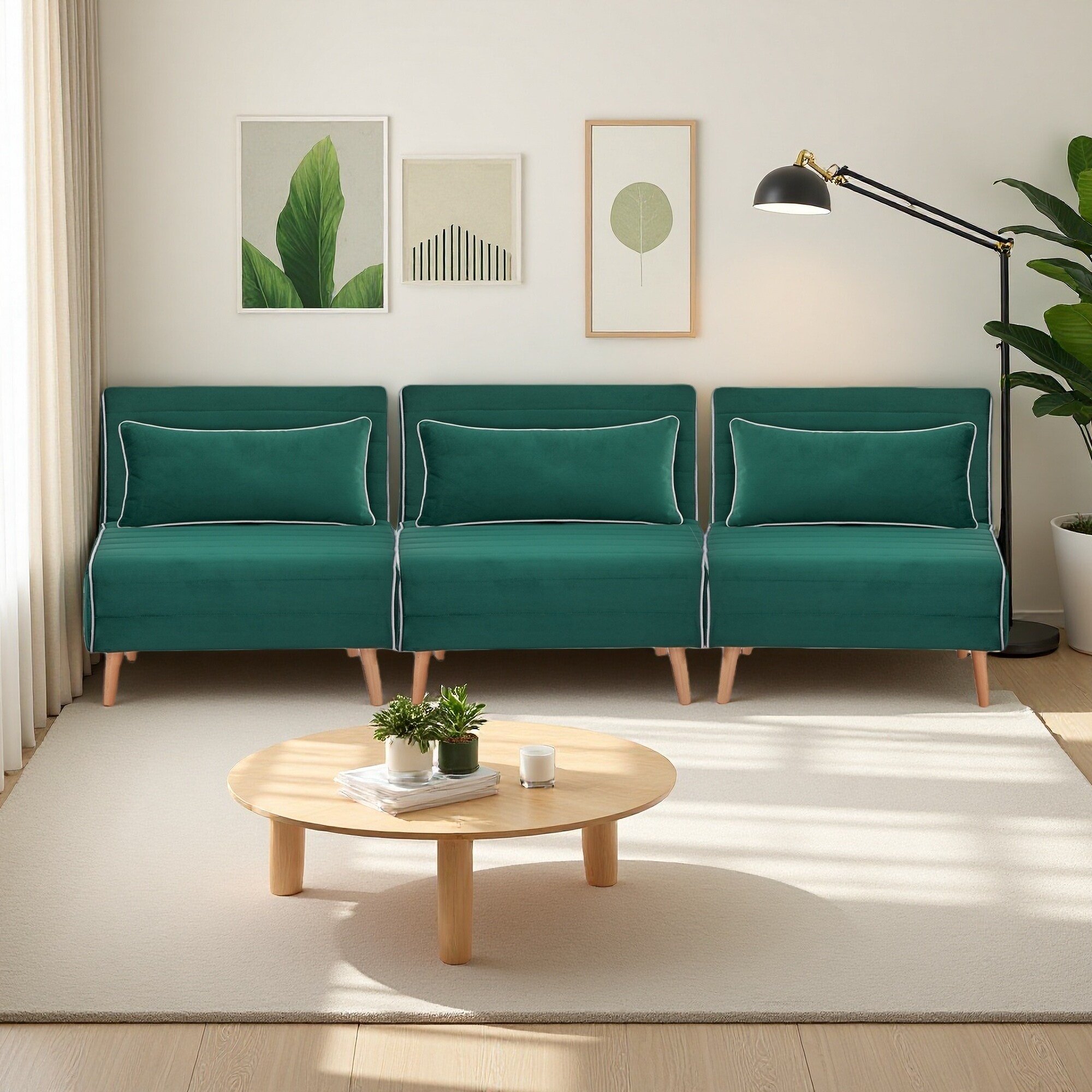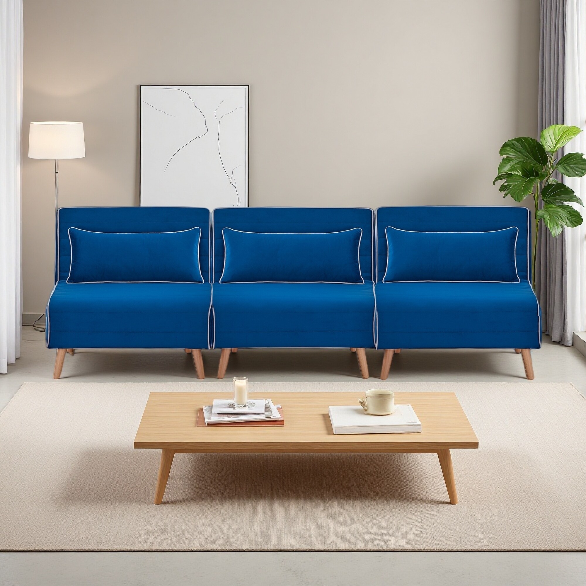 31.52" Velvet Fabric Foldable Sofa Bed with 3-Position Adjustable Backrest (Set of 3)