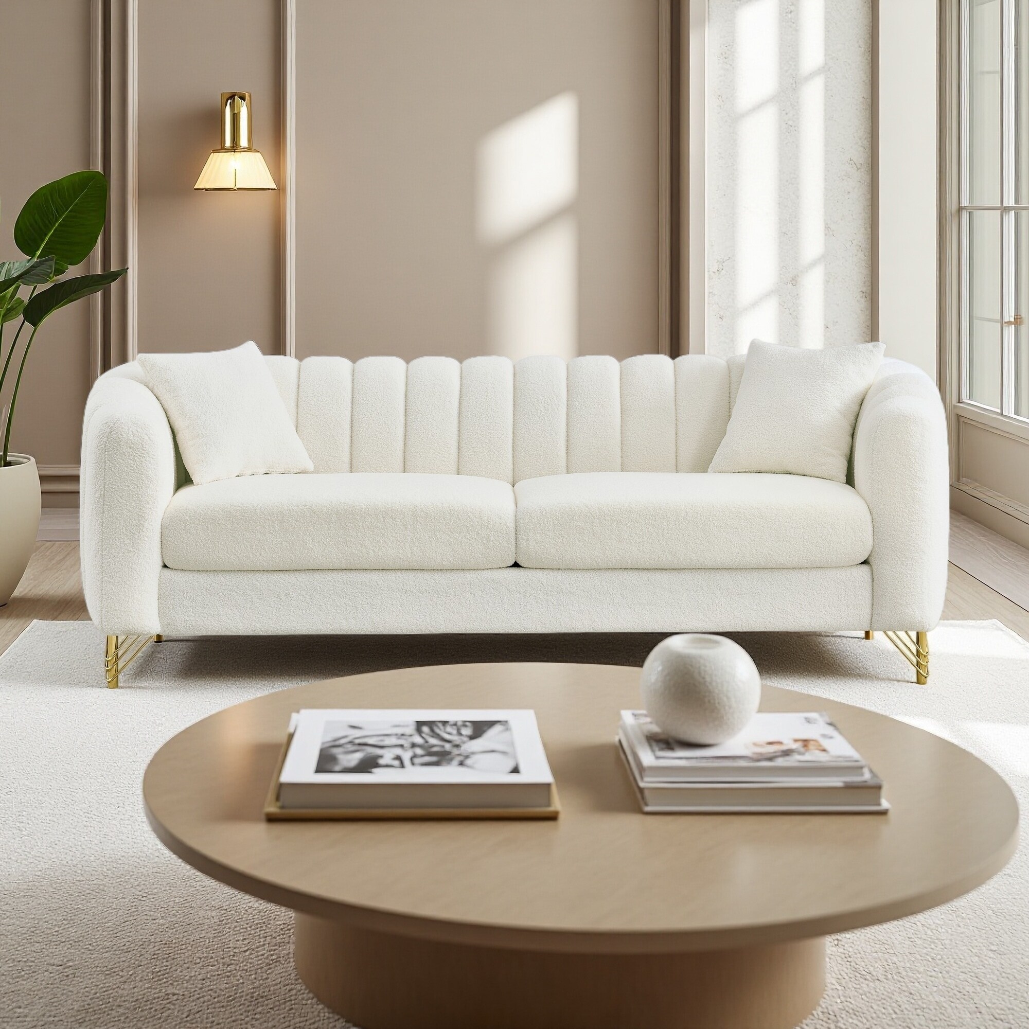 85" Oversized Chenille Sofa, Luxury 3 Seater Deep Couch, Modern Tufted Couch with Metal Legs, Perfect for Living Room, Bedroom,