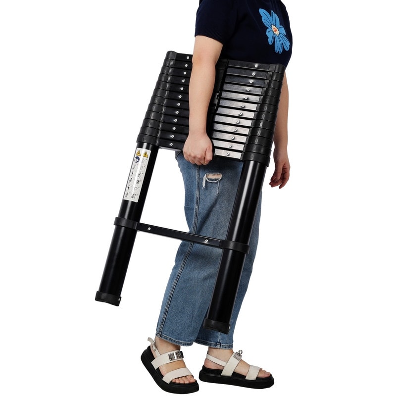 12.5FT Telescopic Aluminum Ladder - 330lb Capacity, Non-Slip Feet, Slow-Down Safety, Portable for Home/Outdoor, Black