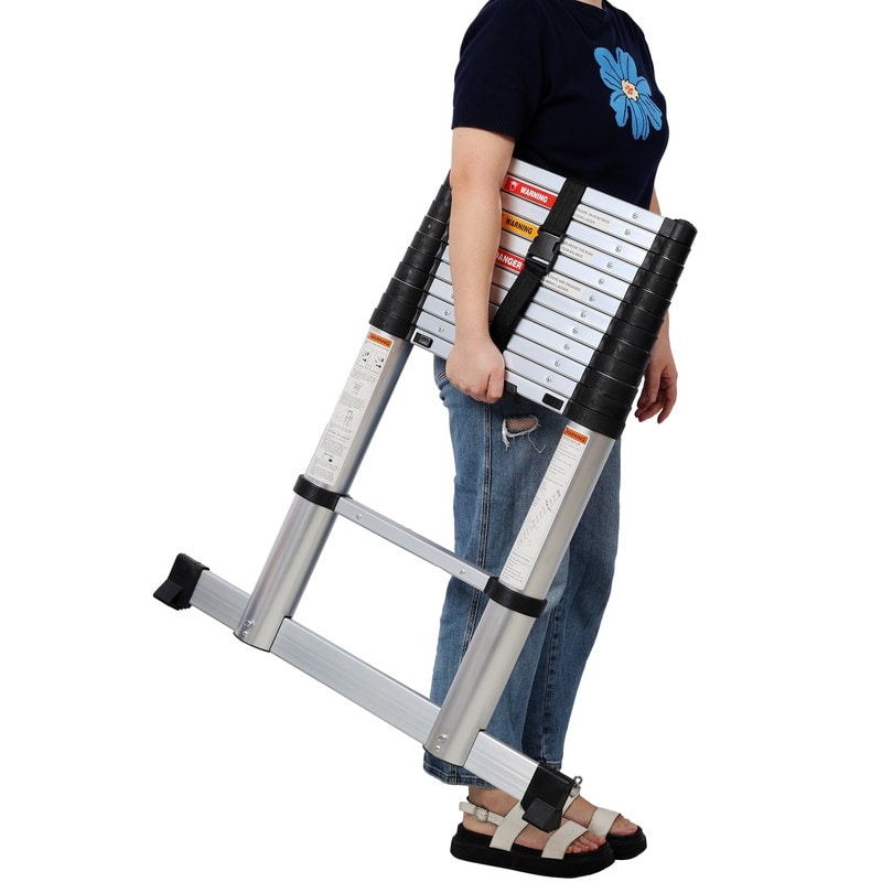 12.5FT Telescopic Aluminum Ladder - 330lb Capacity, Non-Slip Feet, Slow-Down Safety & Stabilizer, Portable,Silver