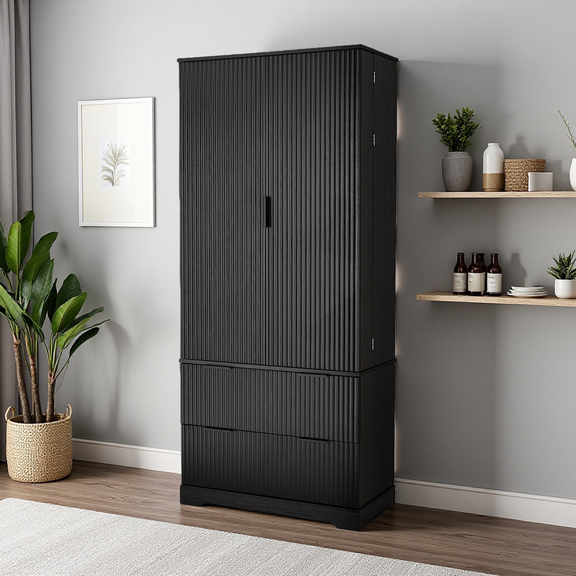 72" Modern Fluted Pantry Cabinet with Drawers & Spice Rack