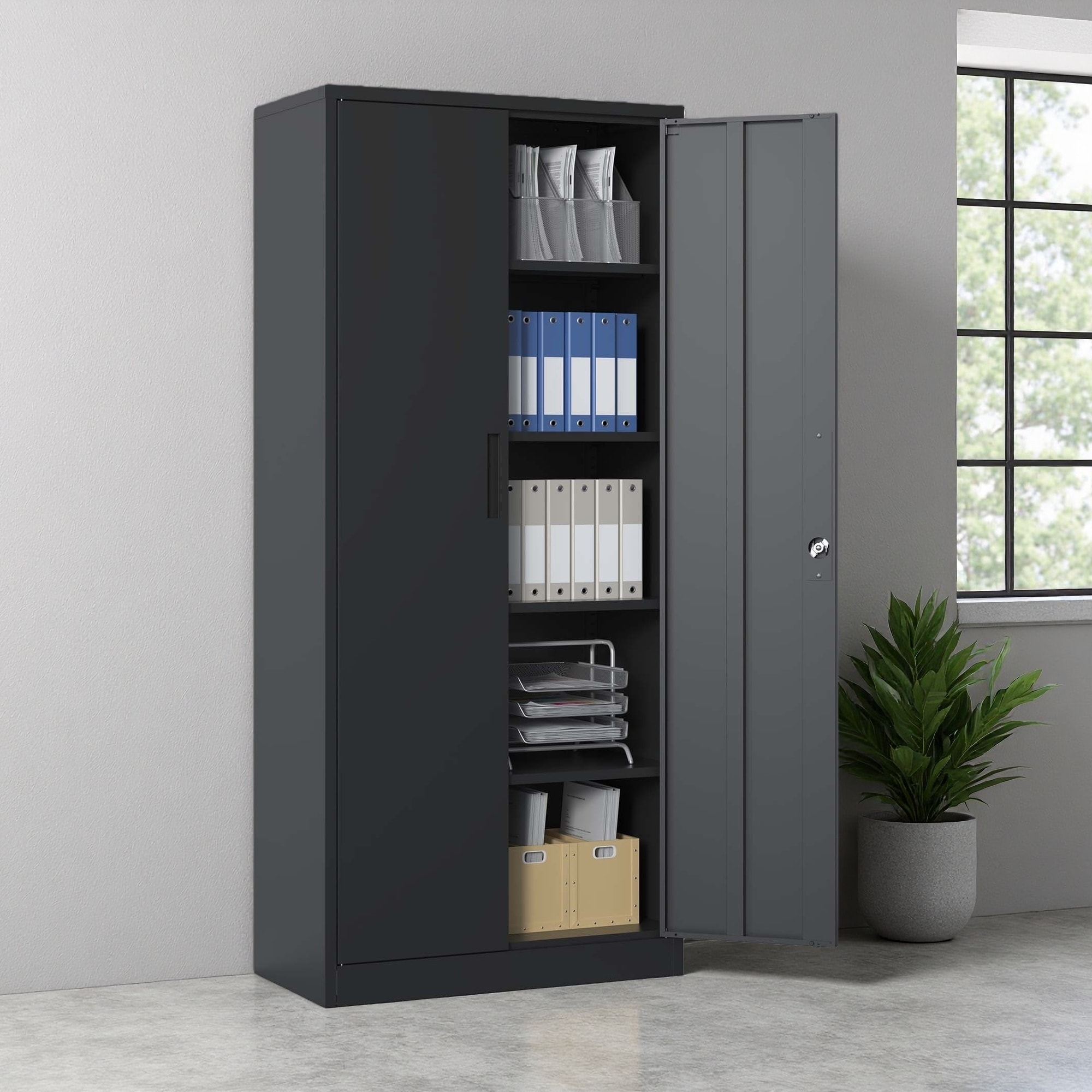 72" Metal Locking Storage Cabinet with Adjustable Shelves