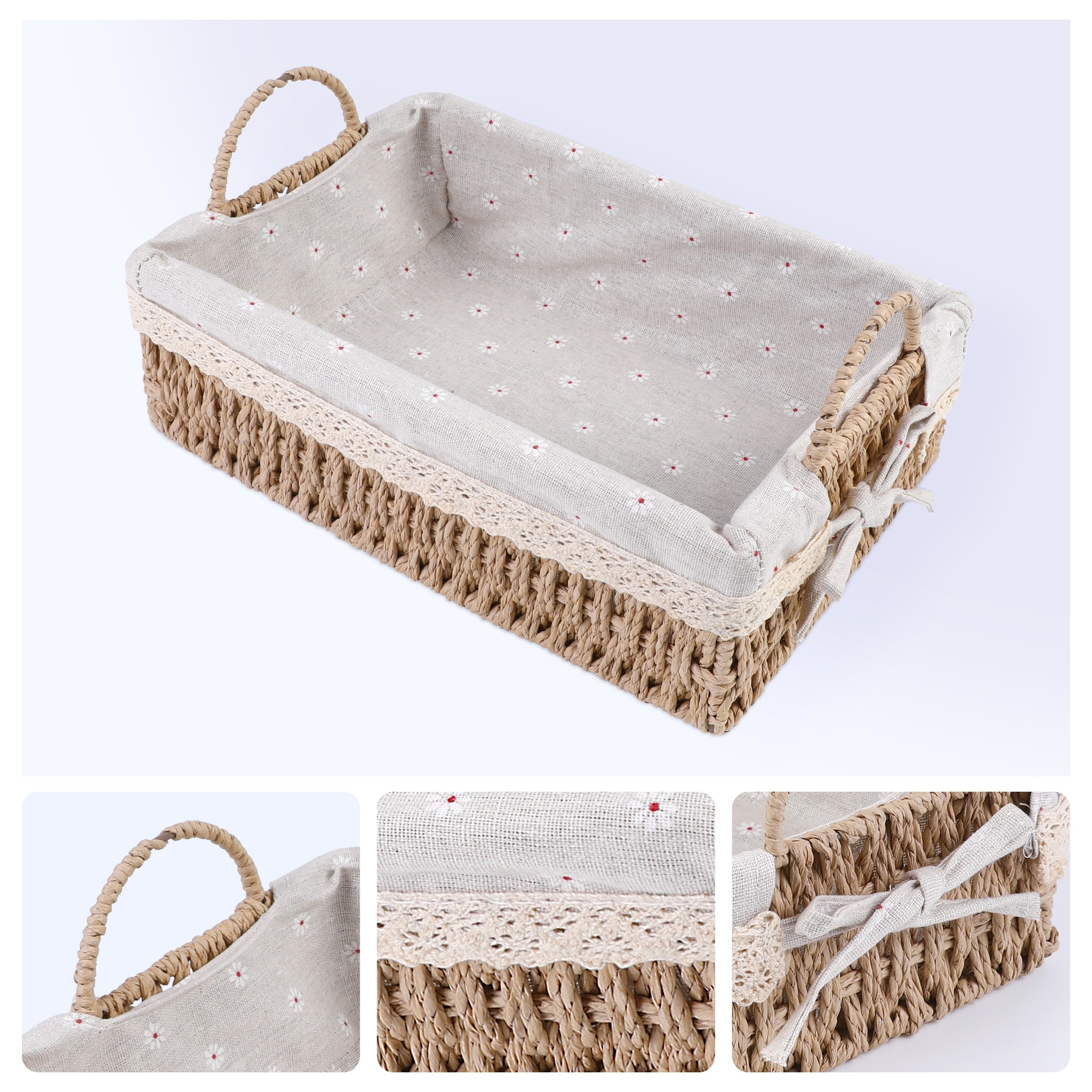 2 Packs Wicker Basket for Organizing, Storage Basket with Handles, Storage Cube for Shelves 10.2x7.1x3.5in/11.8x8.3x3.7in