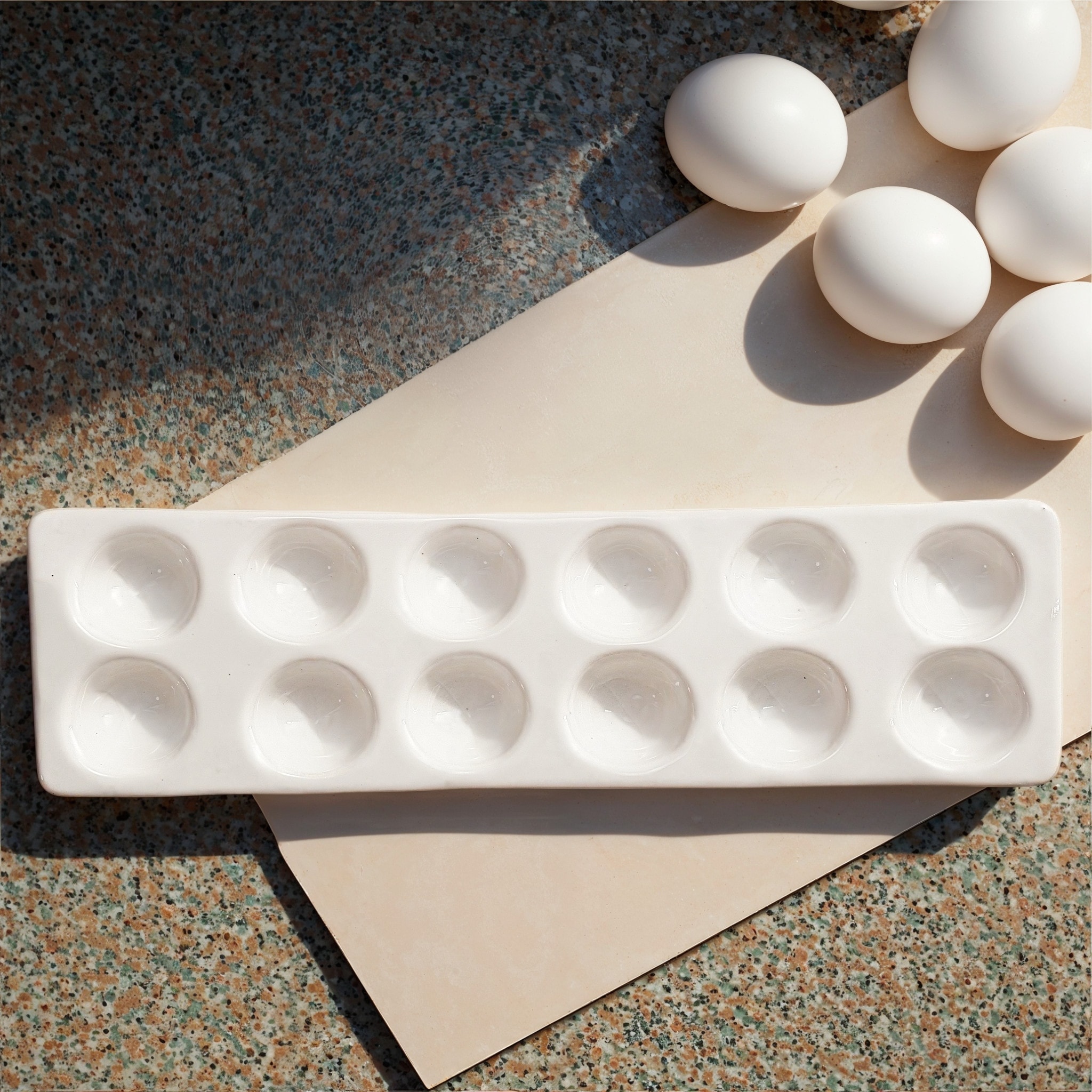 Stoneware Egg Holder - 14.5"L x 4.13"W x 0.5"H
