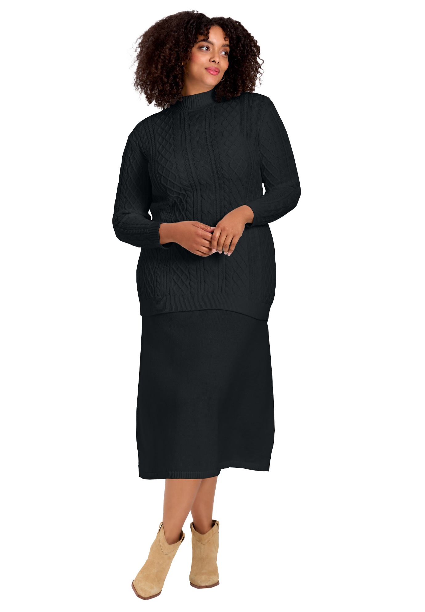 Plus Size Women's Mock Neck Cable Sweater by Avenue in Black (Size 20)