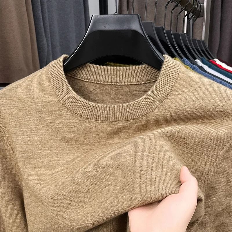 Mens Pure Mink Cashmere Sweater O Neck Knit Pullover For Autumn And Winter light Grey l