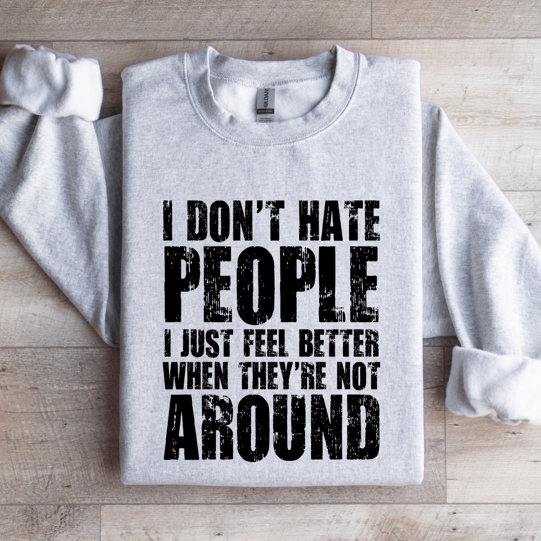 I Don't Hate People I Just Feel Better Sweatshirt S Sport Grey