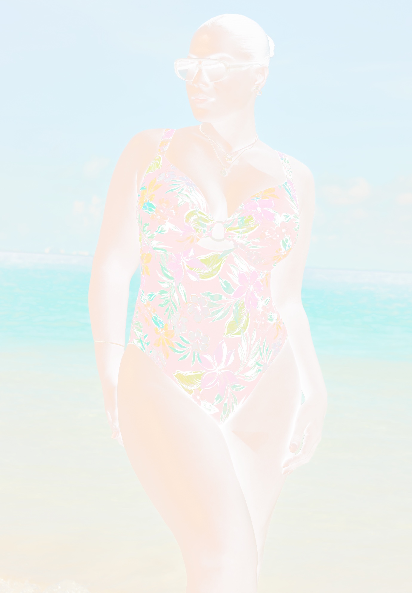 Plus Size Women's Shimmer Ring Underwire One Piece Swimsuit by Swimsuits For All in Ruby Tropical (Size 18)