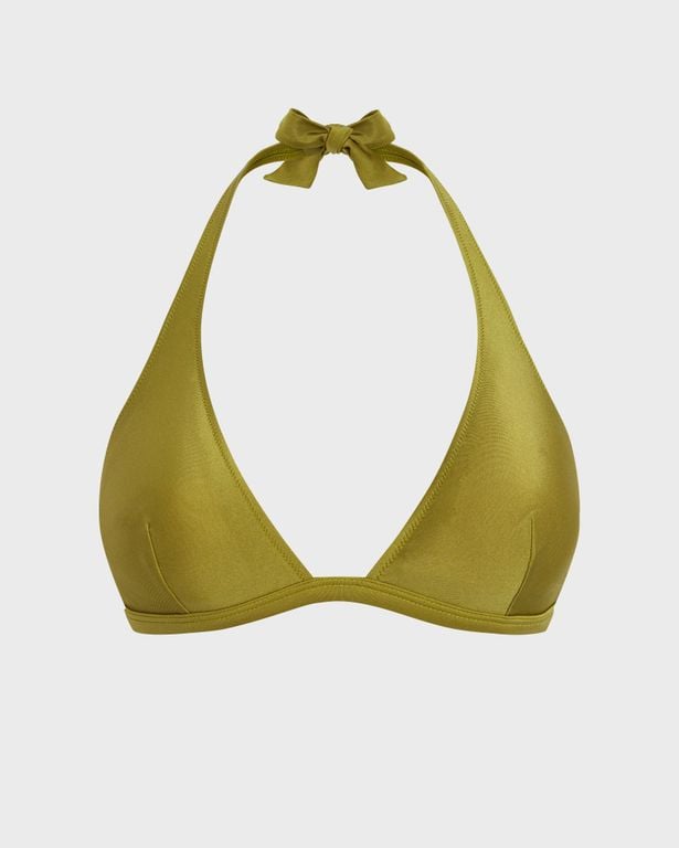 Halter Bikini Stretch Shiny Top Solid - Swimwear - Fleche - Green - Size Xs - Green - Vilebrequin Beachwear