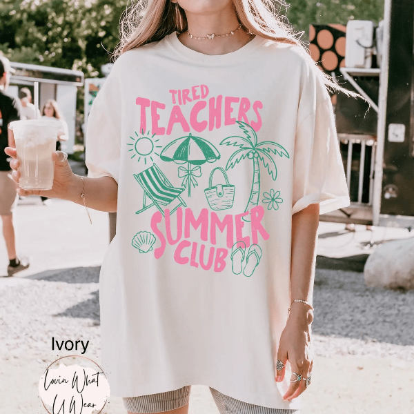 Funny Tired Teachers Club Shirt Comfort Colors Teacher Vacation Tee Gift mustard l sweatshirt