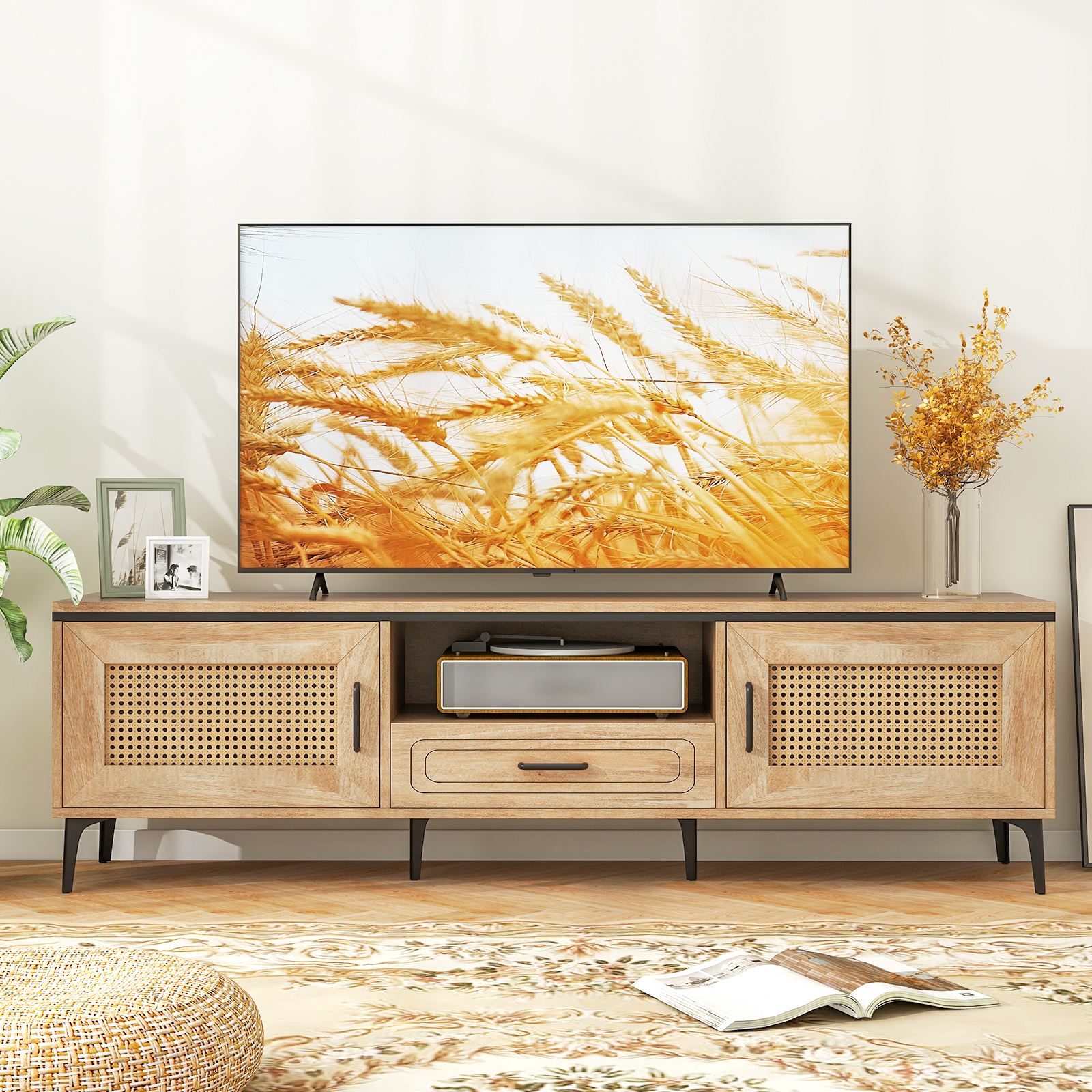 Modern Farmhouse 4 Door TV Stand, Oak Entertainment Center With Adjustable Shelves & Cable Holes, Ideal For Living Rooms Modern Farmhouse 4 Door TV Stand, Oak Entertainment Center With Adjustable Shelves & Cable Holes, Ideal For Living Rooms