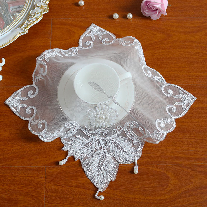 2024 Modern Beads Embroidery Placemat: Table Setting For Christmas Dining Kitchen Accessories Color: White