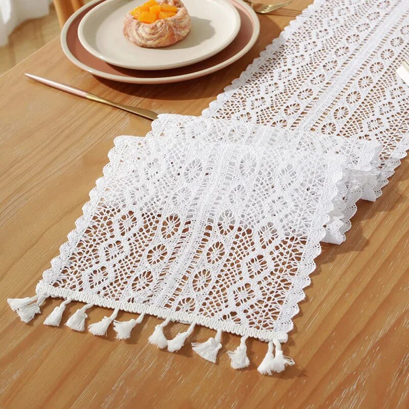Vintage Beige Crochet Lace Table Runner For Coffee Table Decor white D 24x240cm