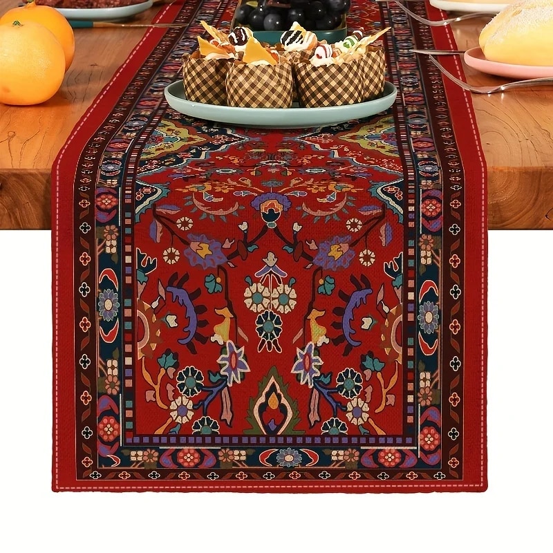 Bohemian Geometric Pattern Table Runner: Linen Kitchen Decoration Accessories For Indoor & Outdoor Holiday Decor 200x33cm78x13inch 2